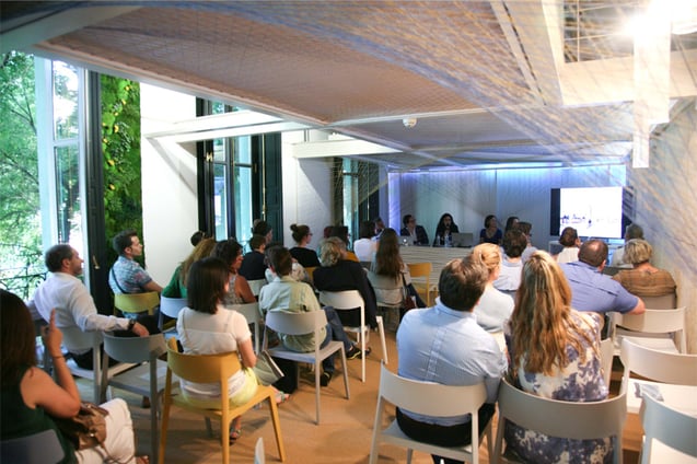 This event took place in the Auditorio, a space furnished by Actiu and designed by the students of the school ESNE. The students were awarded a Special Mention by the Jury for to "their solution for a complex space in an effective and aesthetic manner. For this purpose they used simple but functional materials (sisal, hardboard plates, strings, etc) which increased the acoustics of the premises”.