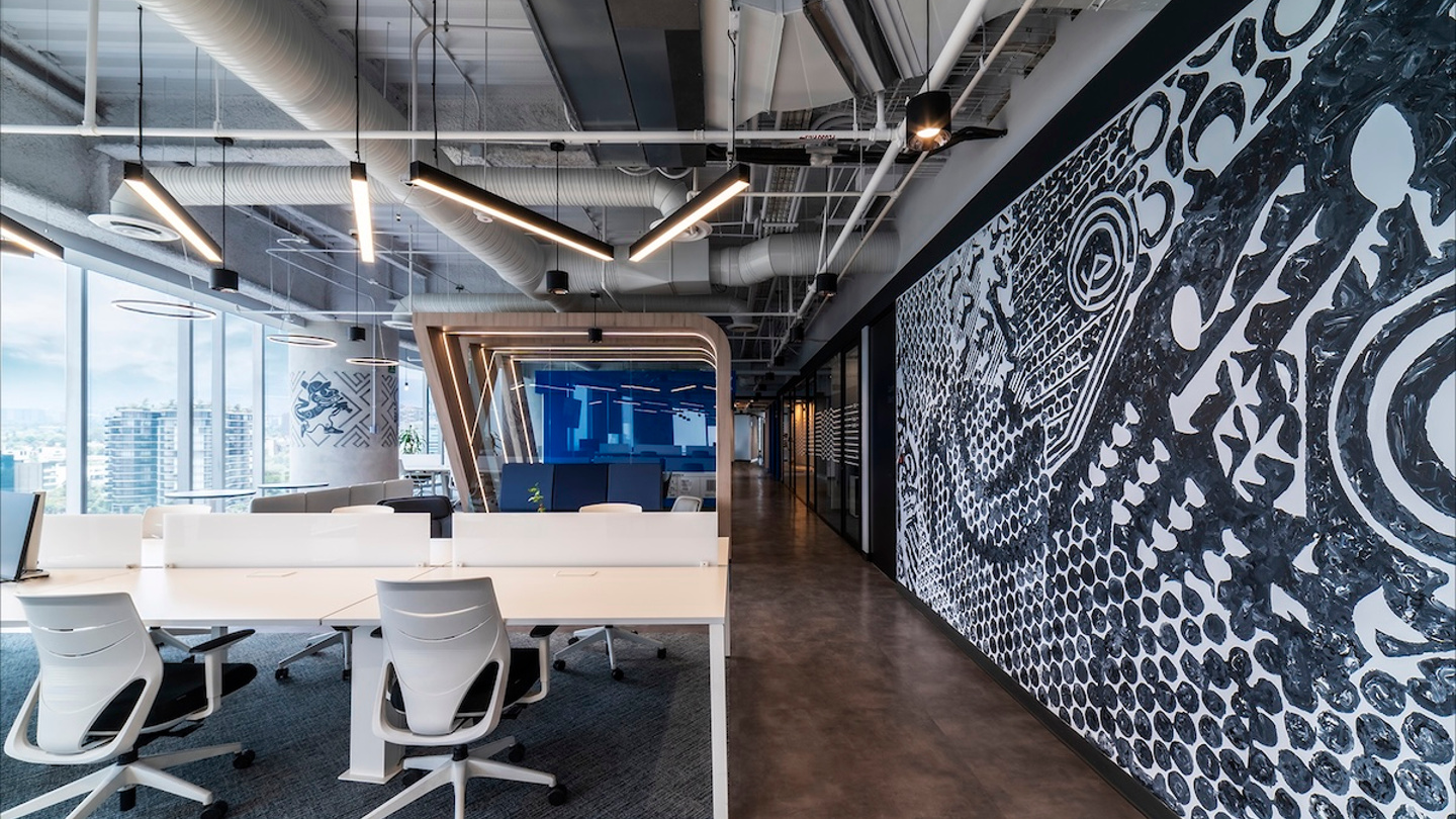 So konnten einige der wichtigsten Aspekte der Markenphilosophie verwirklicht werden, wie z. B. offene Räume für die Zusammenarbeit und die Vermeidung von zugewiesenen Arbeitsplätzen, sodass jedes Teammitglied je nach Aufgabe in jedem Bereich sitzen kann.
