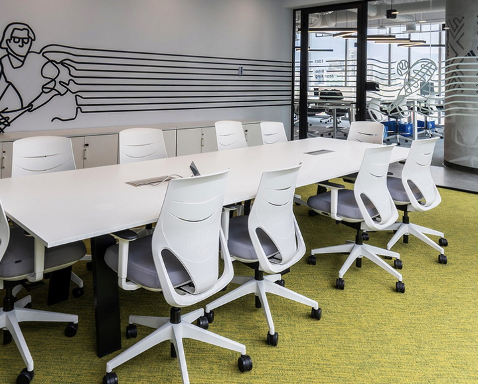 Um den Bedürfnissen von Adidas gerecht zu werden, hat Oxigeno Arquitectura einen zusammenhängenden Raum geschaffen, der das Wohlbefinden und die Produktivität verbessert und in dem Actiu-Möbel eine dynamische und gesunde Arbeitsweise fördern.
