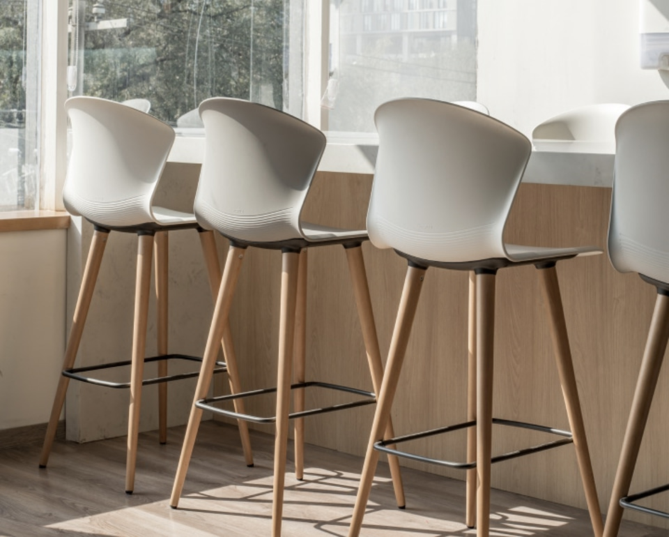 Actiu hat an der Schaffung eines Raums mitgewirkt, der sich von dem ernsten und starren Charakter, der mit traditionellen Büros verbunden ist, entfernt und stattdessen das Wohlbefinden, die Kreativität und das Zugehörigkeitsgefühl der Mitarbeiter zum Unternehmen anregt, mit Programmen wie dem Arbeitsstuhl Stay, der aufgrund seiner großen Vielseitigkeit und Bewegungsfreiheit ausgewählt wurde; der stapelbare Stuhl Urban mit Rädern für mehr Mobilität; der warme und einladende Sessel Noom 30, der den Komfort und das Zugehörigkeitsgefühl steigert; oder der Hocker Whass mit seinem ergonomischen und organischen Design, der sich an jeden Raum anpasst.