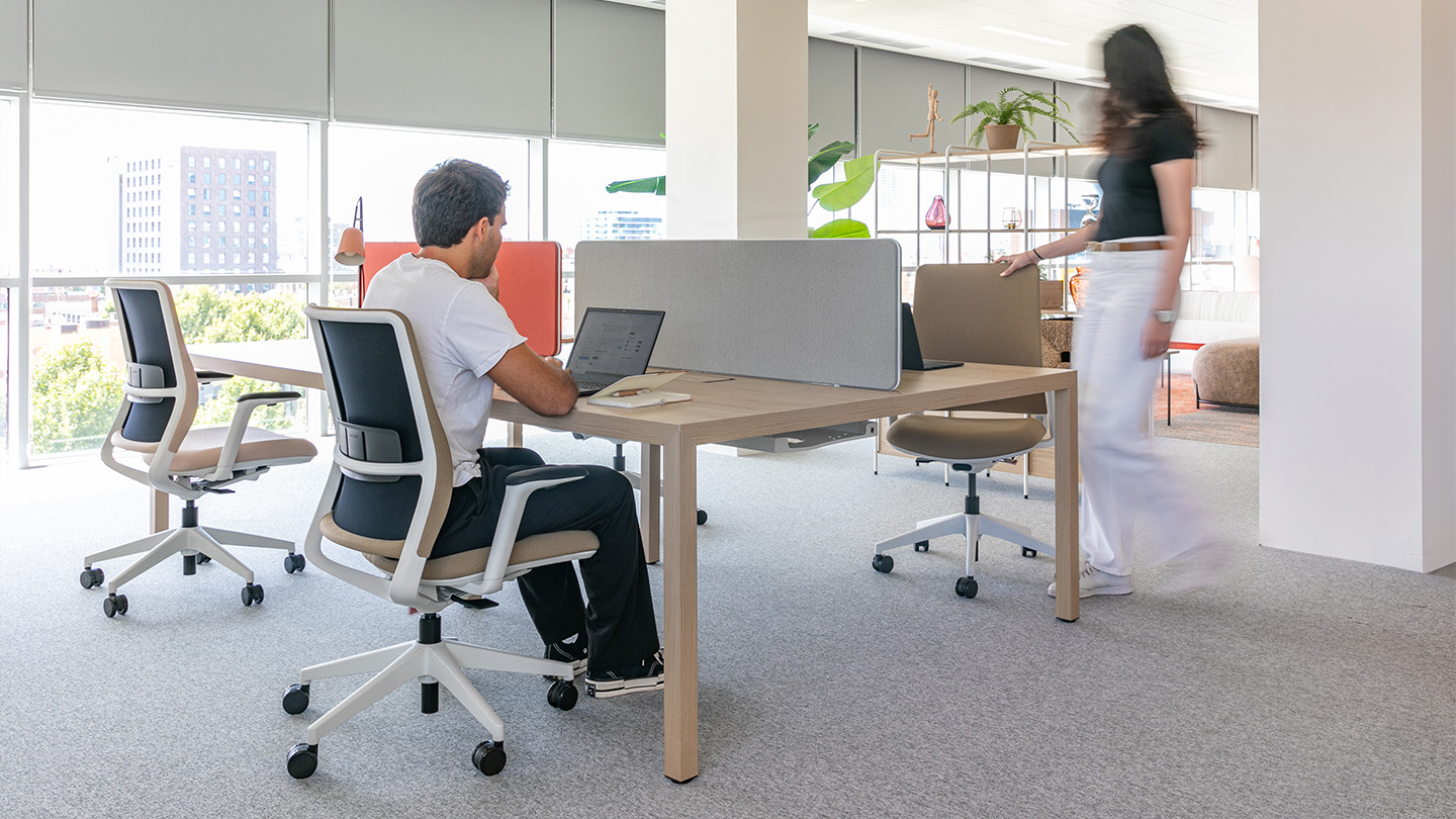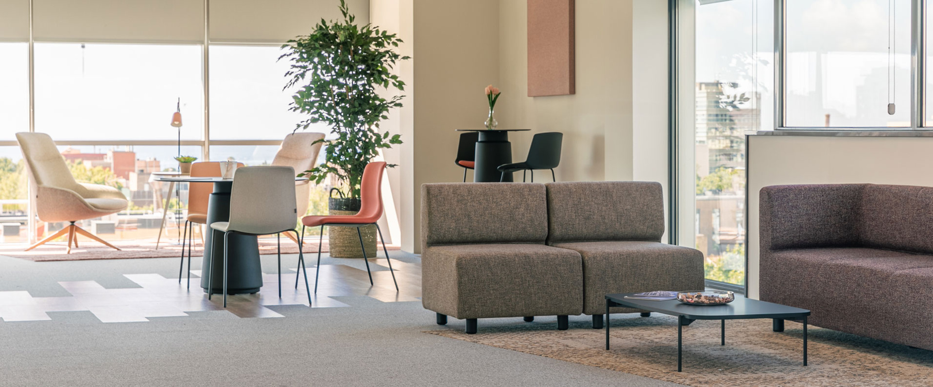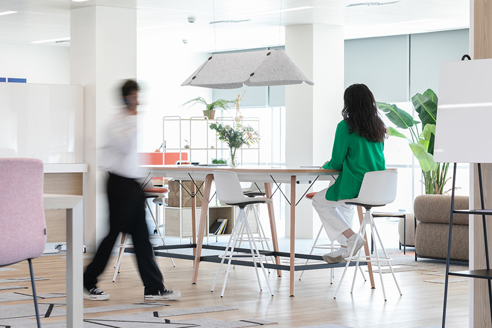 Neben den Möbeln und der Beleuchtung gibt es noch andere, weniger greifbare, aber ebenso wichtige Aspekte wie Biophilie, Luftqualität und akustischer Komfort. Die von Interface entworfenen Teppichböden sorgen nicht nur für eine gesündere Umgebung, sondern fördern auch den akustischen Komfort, was die Produktivität und das emotionale Gleichgewicht steigert, die auch zu einigen der von Actiu durchgeführten Programme beitragen.