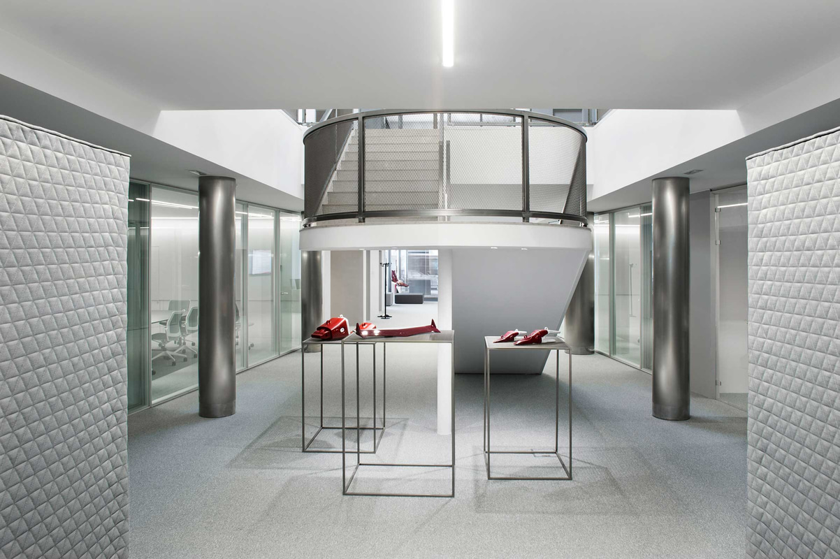 Indem sie die drei Kernwerte des Unternehmens - Weisheit, Innovation und Handwerk - miteinander verbinden, haben Denys und Von Arend einen Raum geschaffen, der aus einer gründlichen Analyse des Unternehmens, seiner Kunden, seiner Corporate Identity, seines Standorts und des Gebäudes, in dem die Büros untergebracht werden, hervorgeht .
