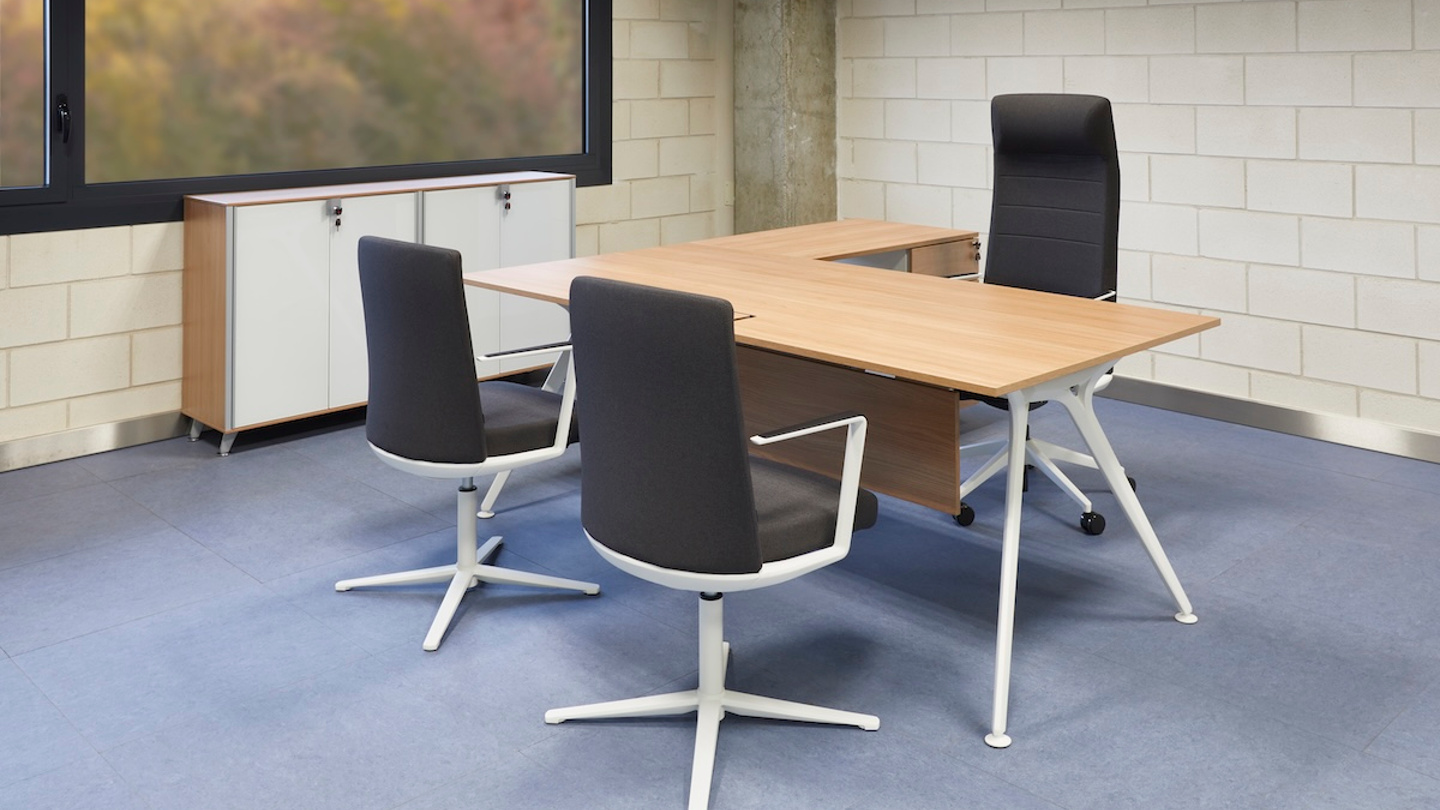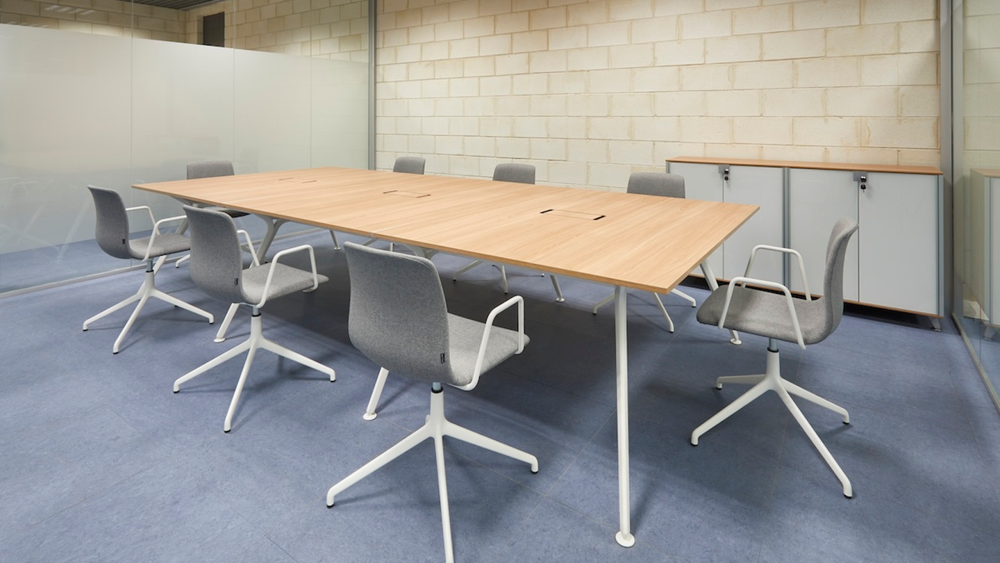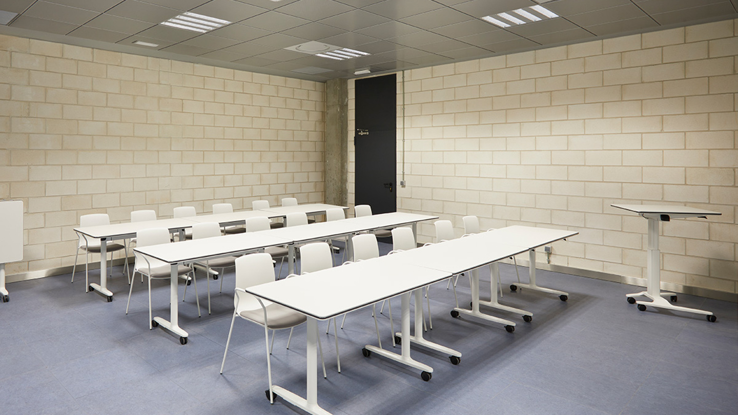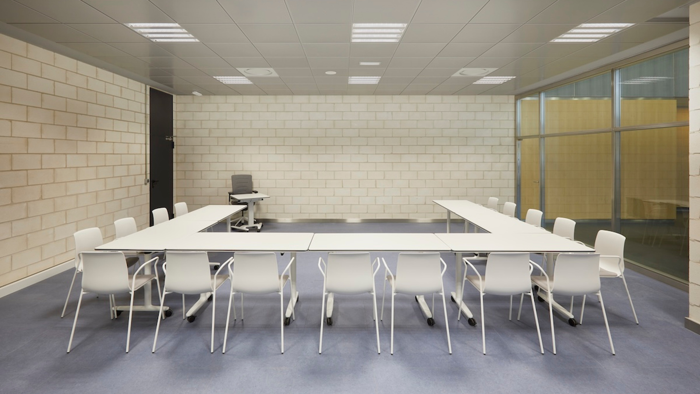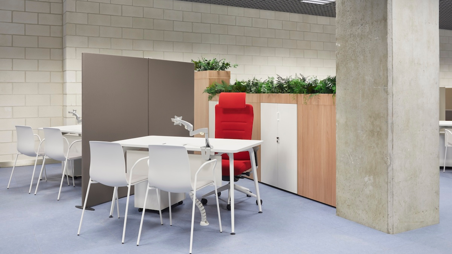 In der Etage der Generaldirektion der öffentlichen Arbeitsverwaltung der Gemeinde Madrid wurde die rote Farbe der Stadtgemeinde auf manche Möbelstücke übertragen, wie z. B. auf die Bend-Module in den Besprechungs- und Wartebereichen und einige Bürostühle im offenen Bereich. Die Arkitek-Tische und die Cron-Chefsessel verleihen den Büros einen eleganten Touch, während in den Schulungsräumen leicht faltbare und stapelbare Lösungen wie die Tische Talent und die Stühle Noom 50 zum Einsatz kommen.