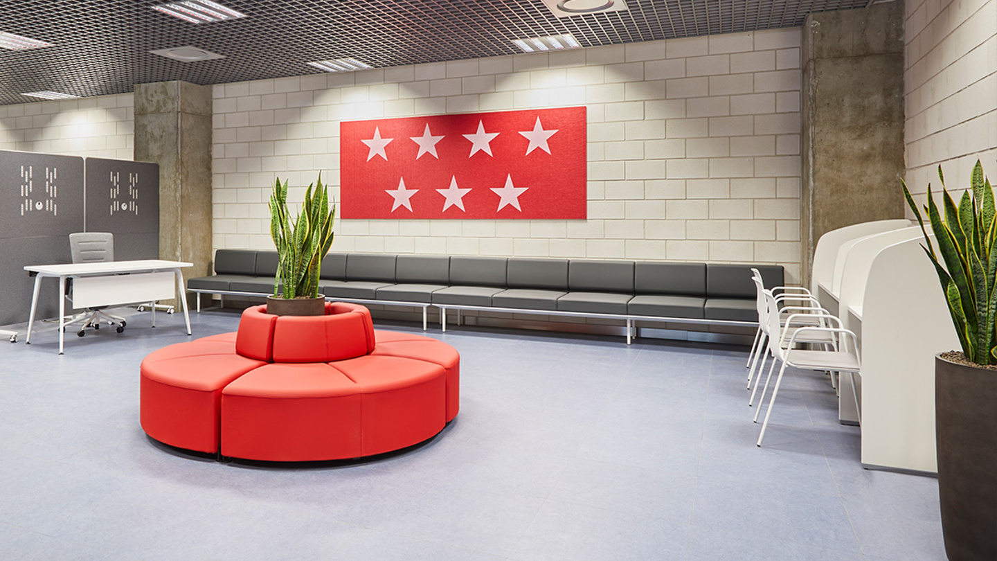 Die spanische staatliche Arbeitsverwaltung (SEPE) und die Generaldirektion der öffentlichen Arbeitsverwaltung der Region Madrid wollten den neuen Hauptsitz in Santa Eugenia in Vallecas (Madrid) zu einem ergonomischen und dynamischen Raum machen. Das Raum- und Möbeldesign sollte dazu beitragen, der Öffentlichkeit einen besseren und effizienteren Service zu bieten und das Arbeitsumfeld zu verbessern.