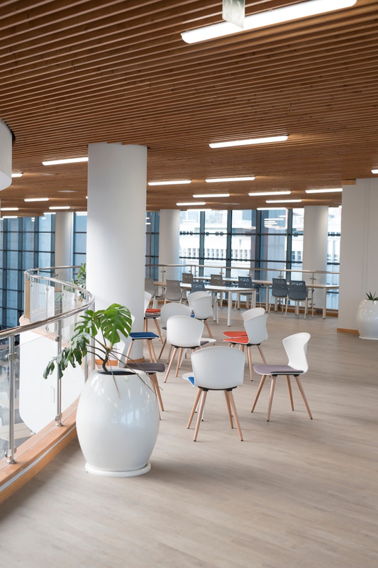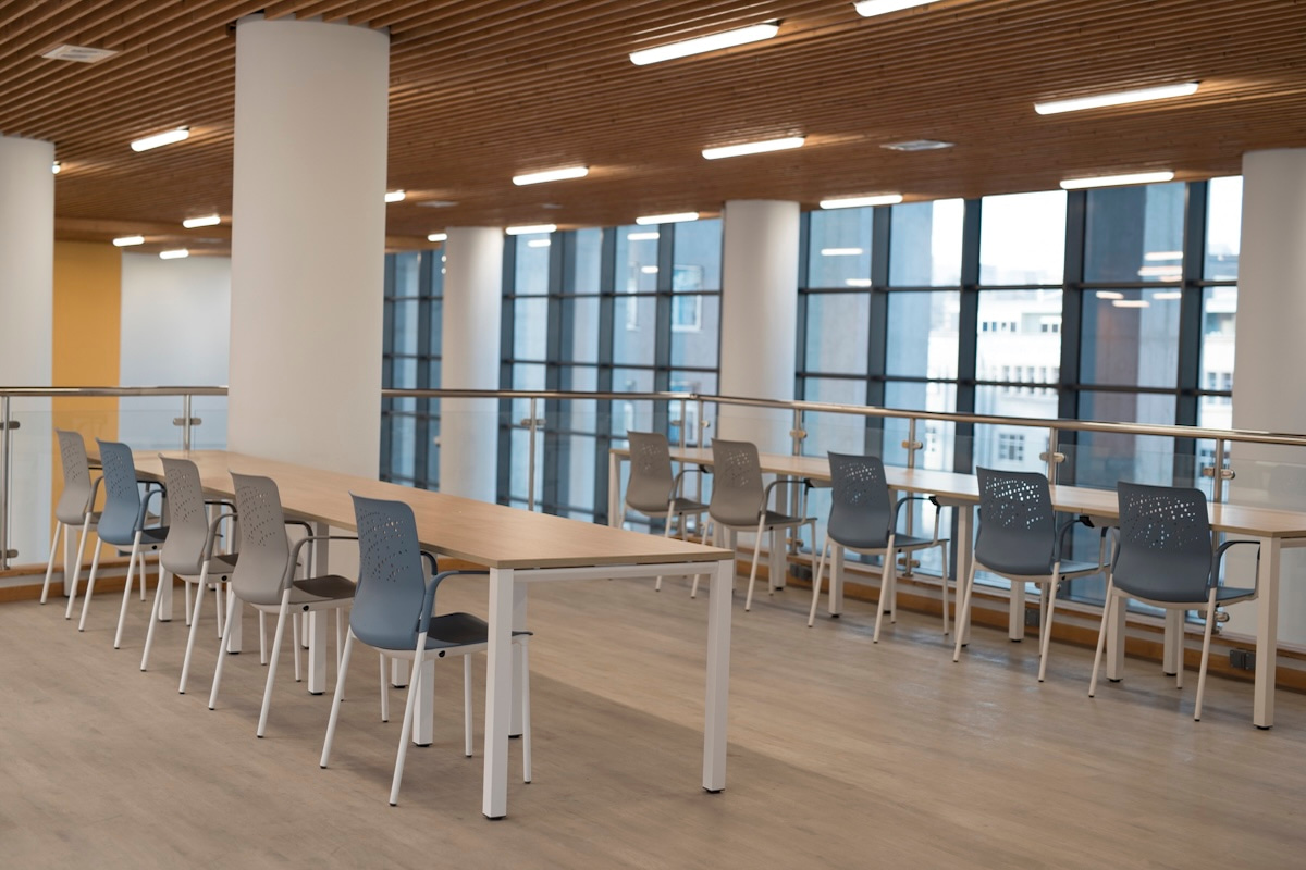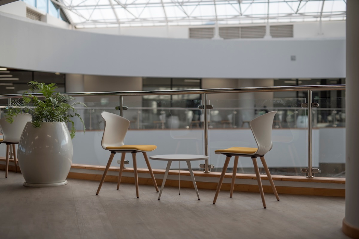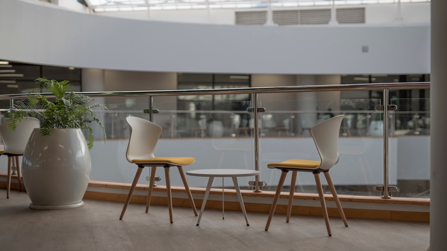 Die Catering- und Sicherheitsbereiche sind mit vielseitigen und funktionalen Wing-Stühlen ausgestattet, die sich dank ihrer Stapelbarkeit leicht reinigen und bei Bedarf schnell umstellen lassen. Im Café sowie den informellen Besprechungsbereichen finden Sie Tabula-Tische in verschiedenen Ausführungen.