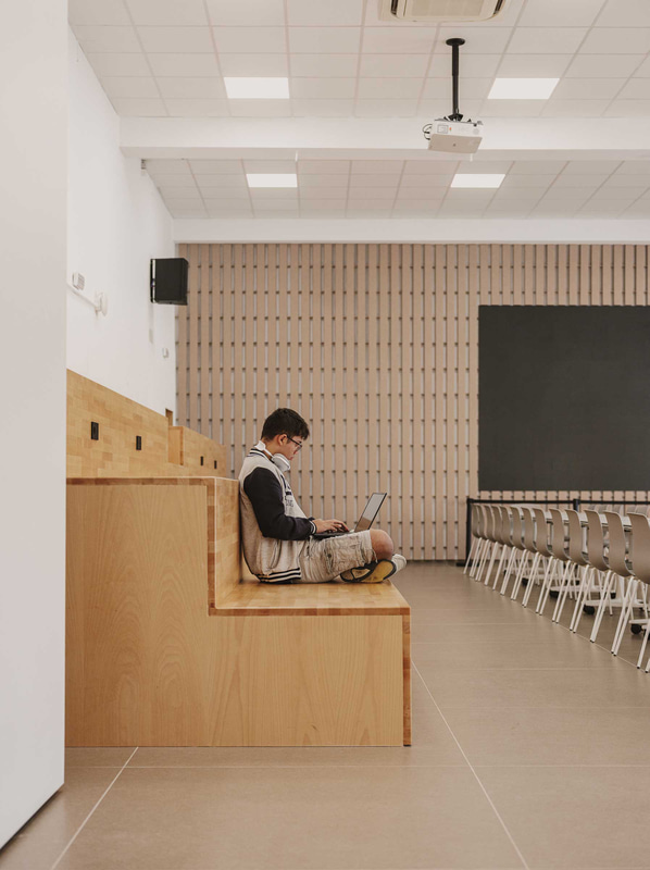 Das Gleichgewicht zwischen vielseitigem Mobiliar und spezifischen Stücken schafft eine Umgebung, die bequem, intuitiv und voller Möglichkeiten ist und die Schüler dazu einlädt, den Raum auf unerwartete Weise neu zu nutzen. "Die Anpassungsfähigkeit von Oberflächen, Texturen und Größen hat eine kohärente Einrichtung ermöglicht, die eine komfortable, intuitive und zutiefst menschliche Alltagsnutzung ermöglicht", sagt Muñoz Aparici.