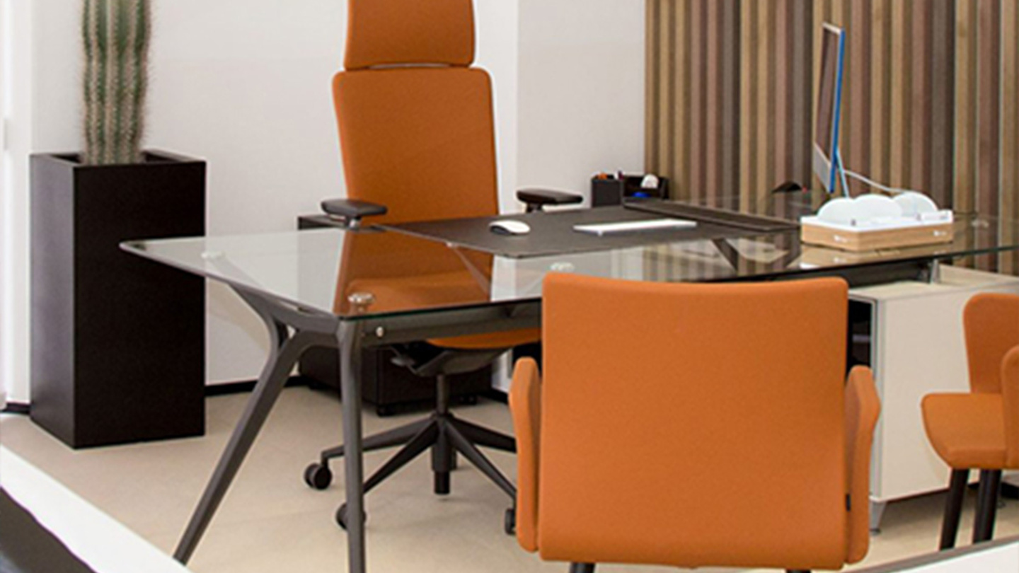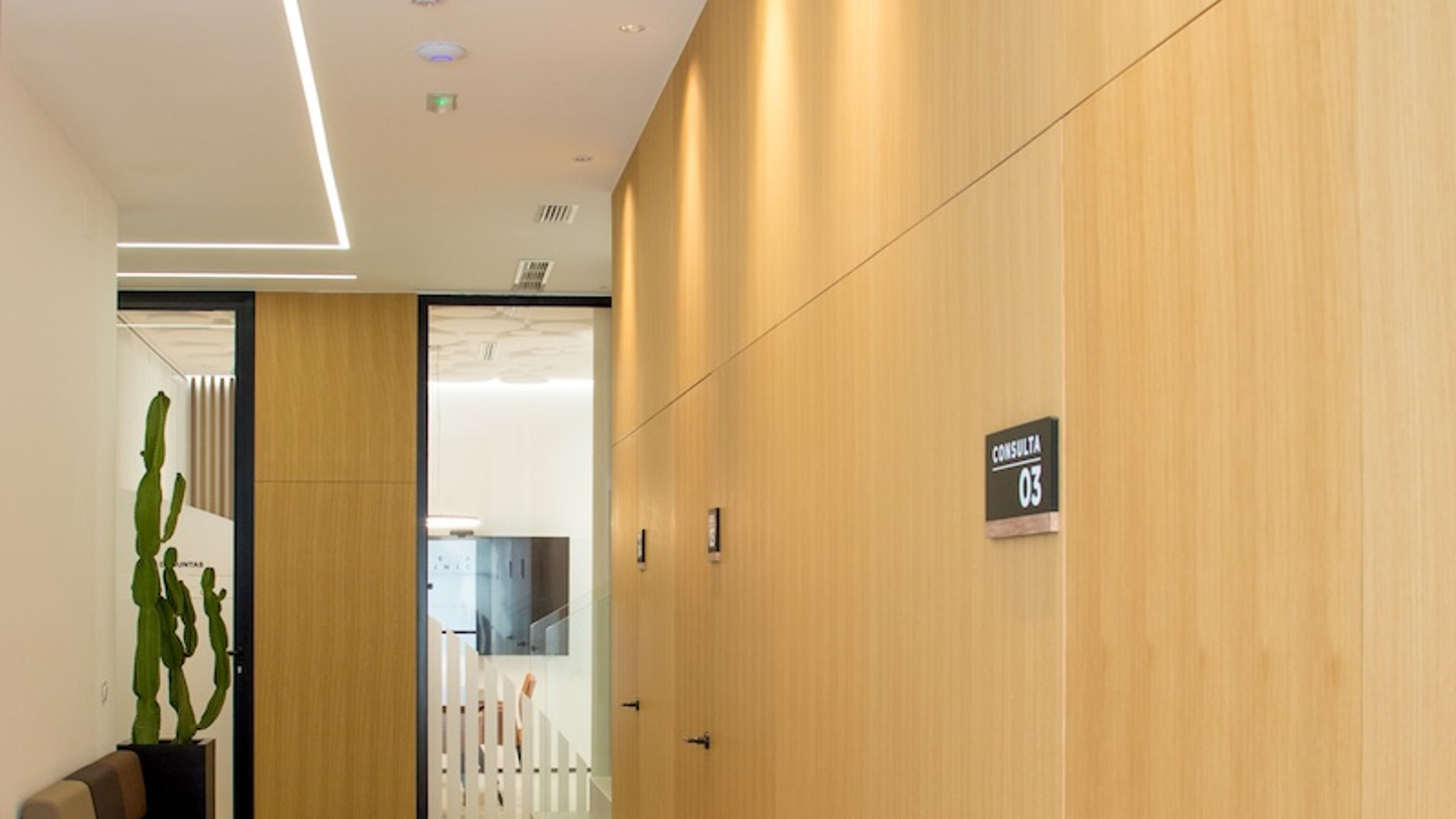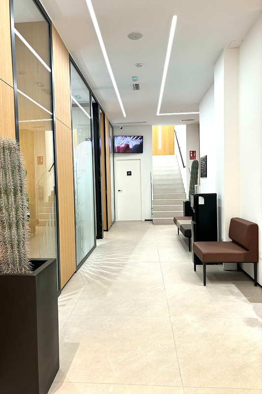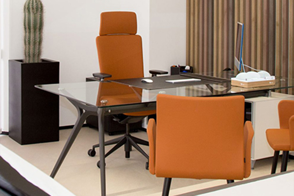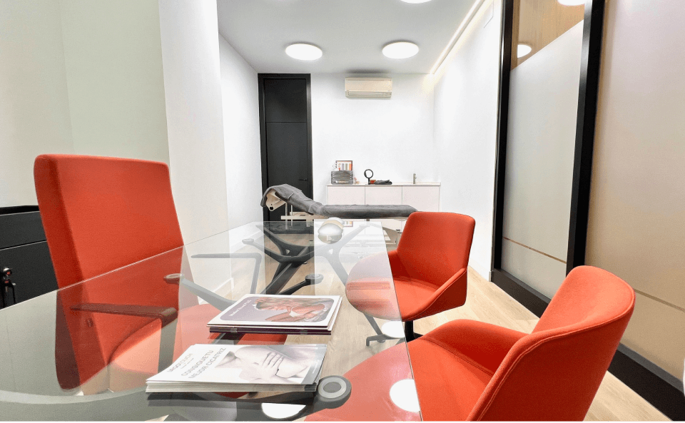 Actiu hat an der Gestaltung der funktionellen, modernen Räumlichkeiten mit Designmöbeln wie dem Arkitek-Tisch mit schwarzer Metallstruktur und Glasplatte mitgewirkt, der Beratungsräume elegant und größer wirken lässt, in Kombination mit Noom-Sesseln und modularen Schränken, die praktischen Stauraum bieten. In der Eingangshalle laden zwei Owwi-Sessel und ein Eidos-Couchtisch zum Warten oder Ausruhen in einer gemütlichen, wohnlichen Atmosphäre ein.