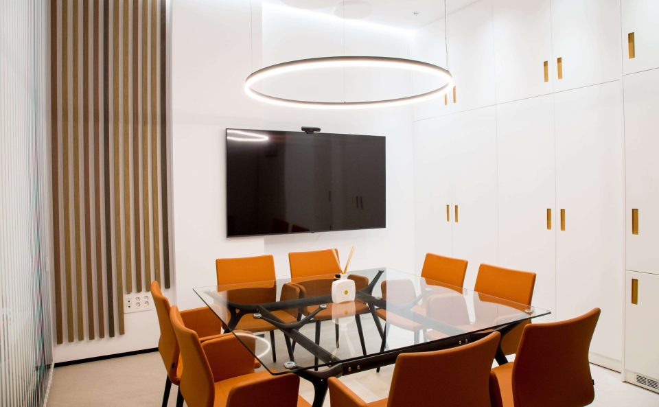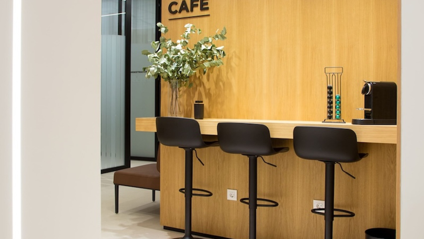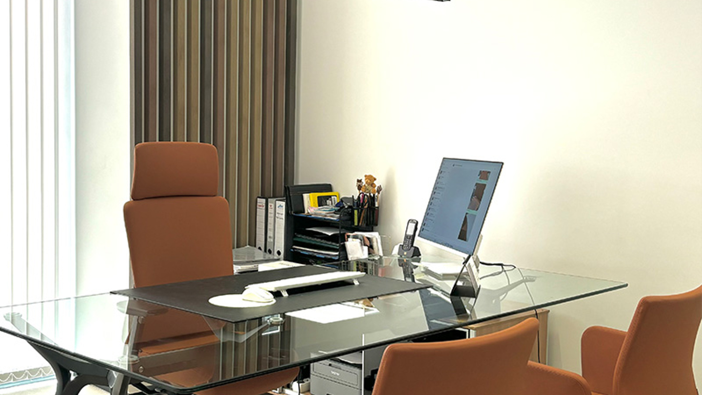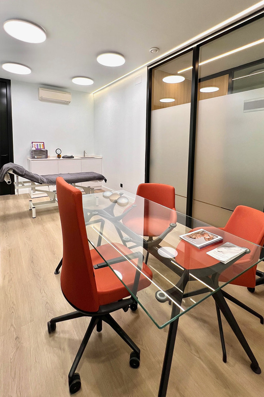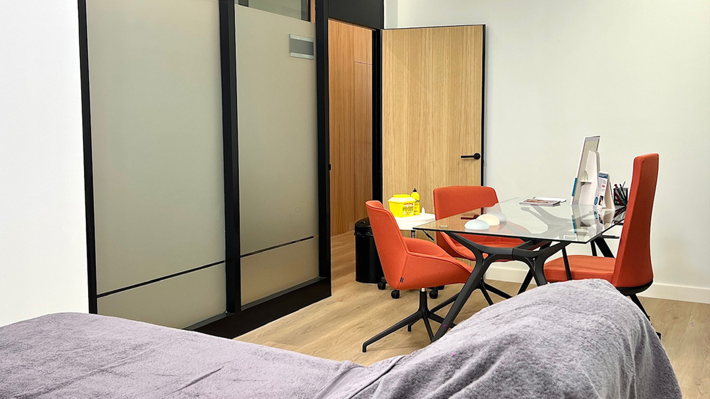 Actiu hat an der Gestaltung der funktionellen, modernen Räumlichkeiten mit Designmöbeln wie dem Arkitek-Tisch mit schwarzer Metallstruktur und Glasplatte mitgewirkt, der Beratungsräume elegant und größer wirken lässt, in Kombination mit Noom-Sesseln und modularen Schränken, die praktischen Stauraum bieten. In der Eingangshalle laden zwei Owwi-Sessel und ein Eidos-Couchtisch zum Warten oder Ausruhen in einer gemütlichen, wohnlichen Atmosphäre ein.