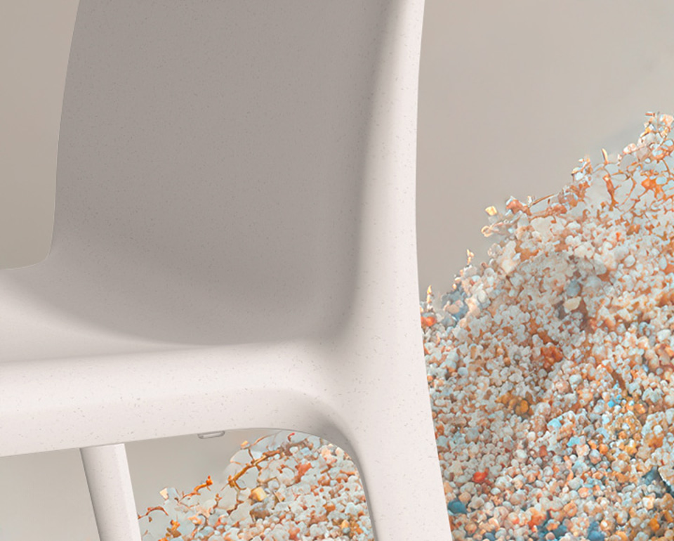 Unser zu 100% recycelter Stuhl