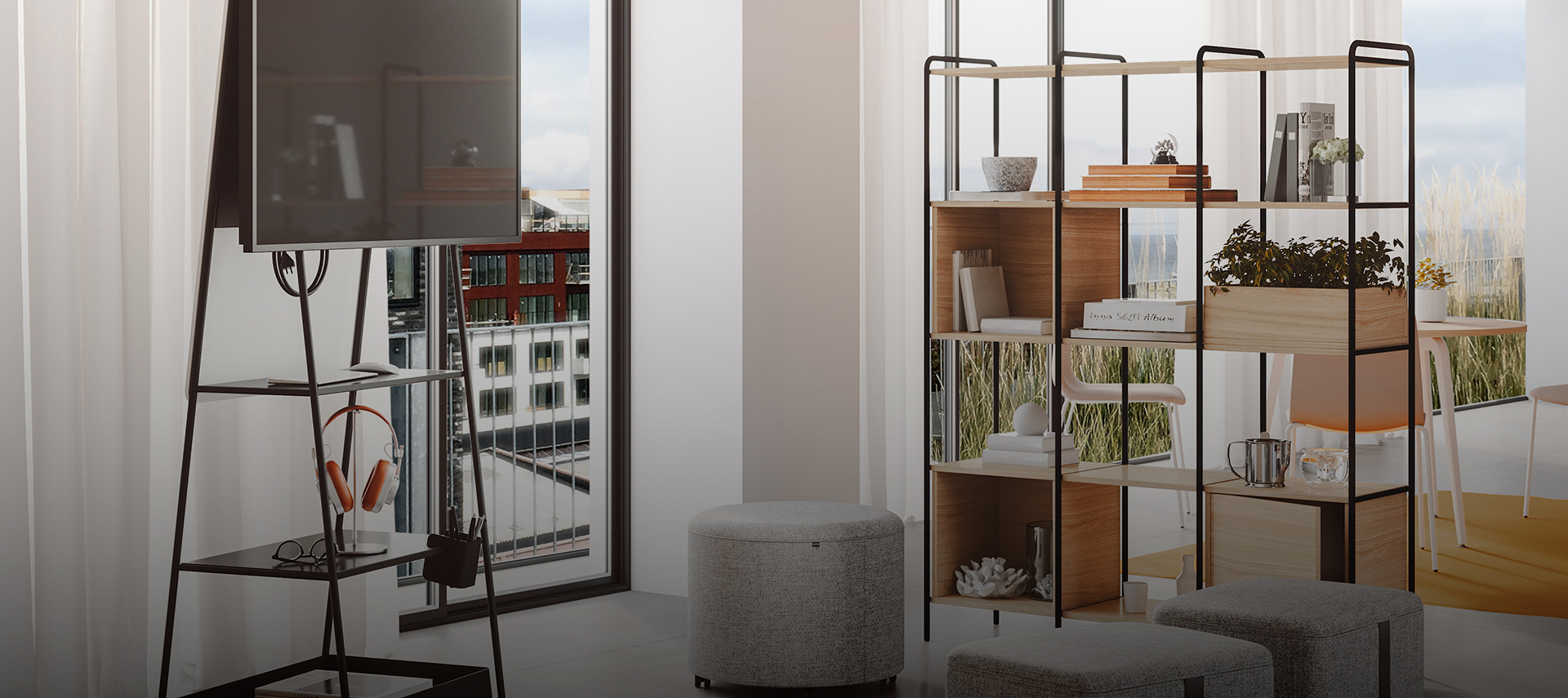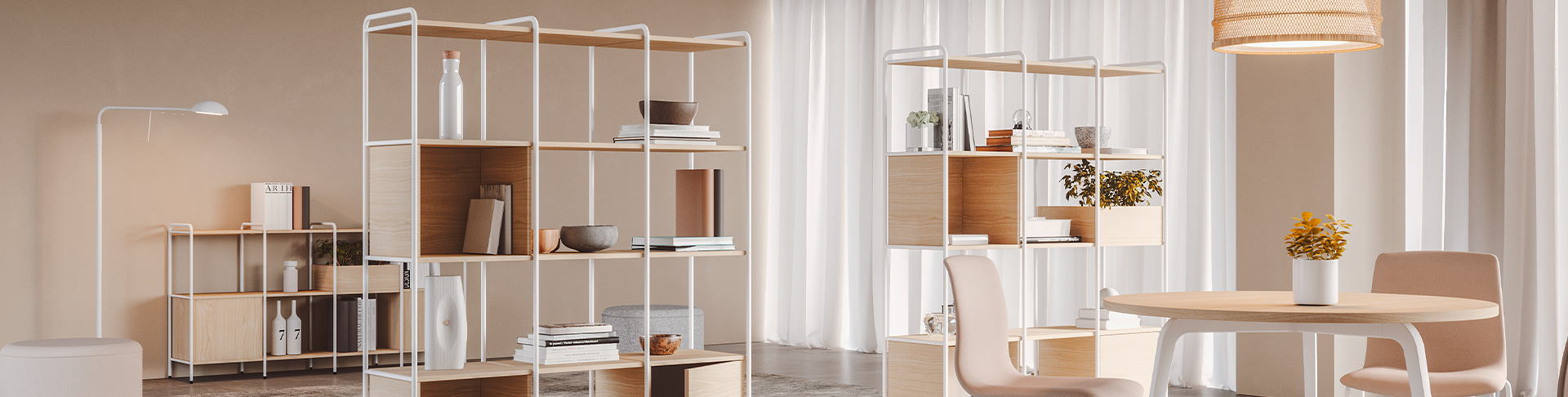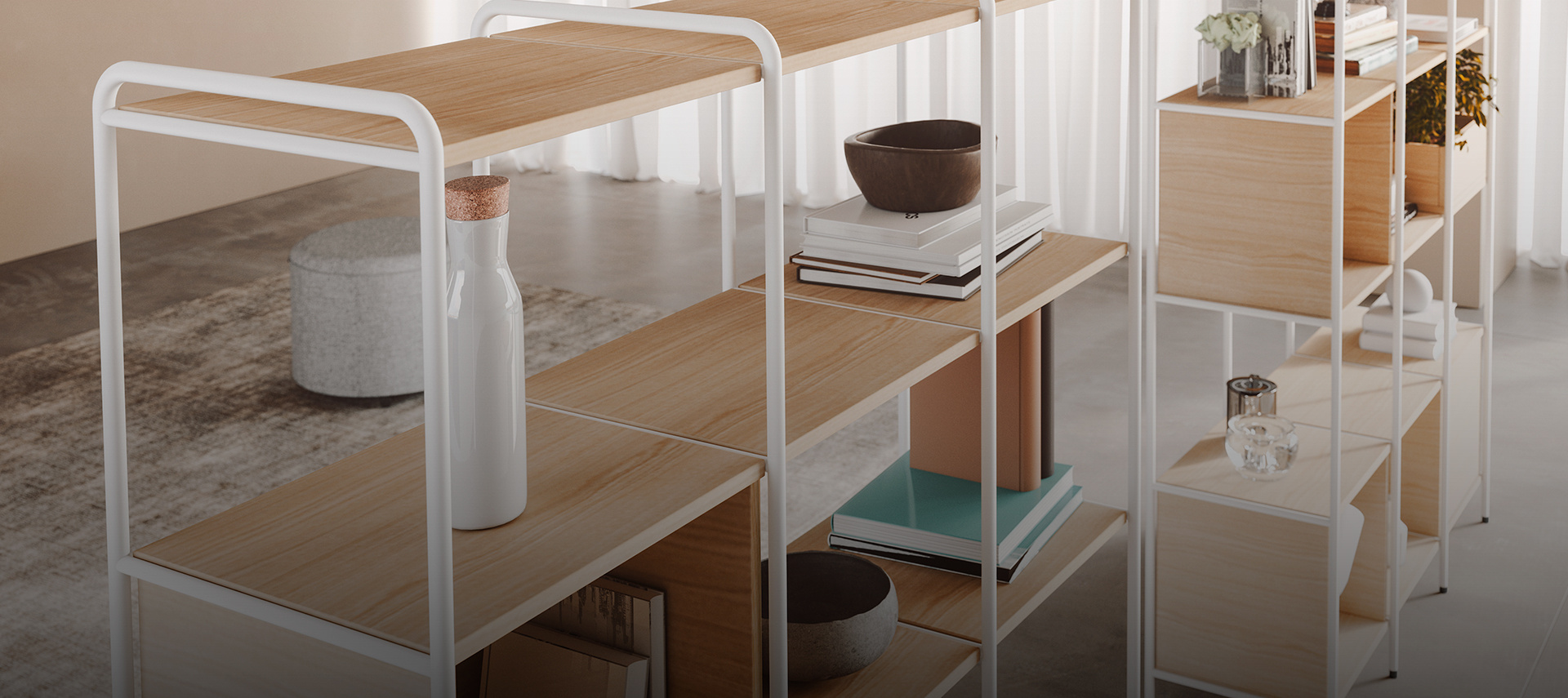 Sein funktionelles Design eignet sich ideal als dekorative Aufbewahrungslösung für Büroräumlichkeiten, Coworking-Spaces oder Home-Offices.