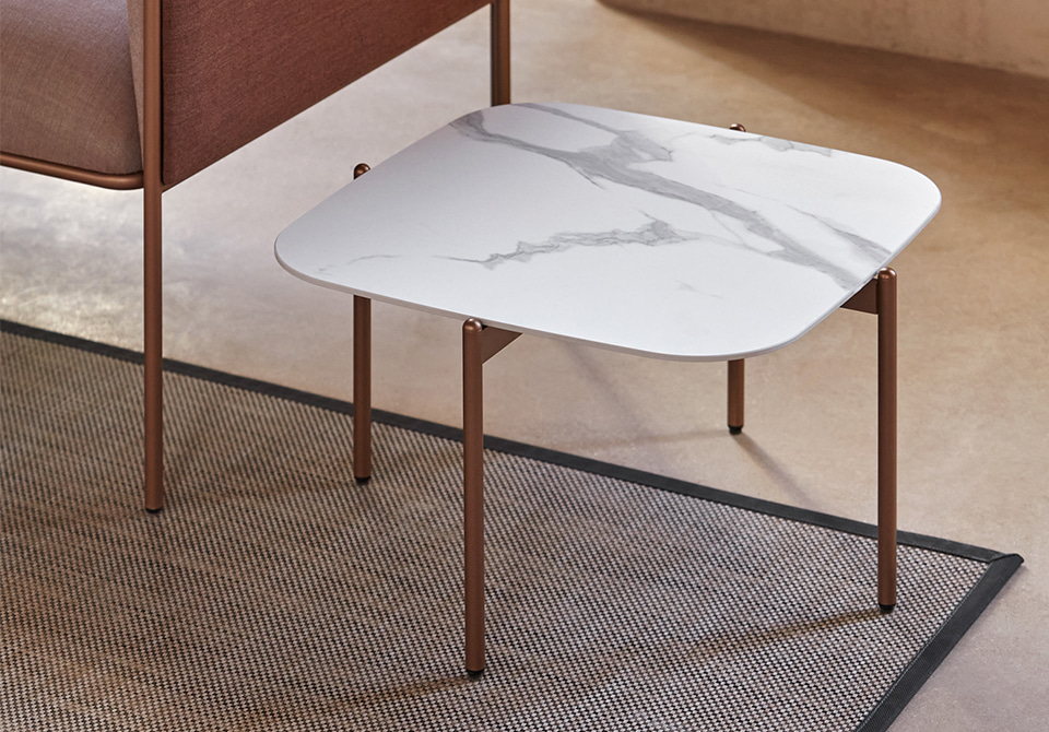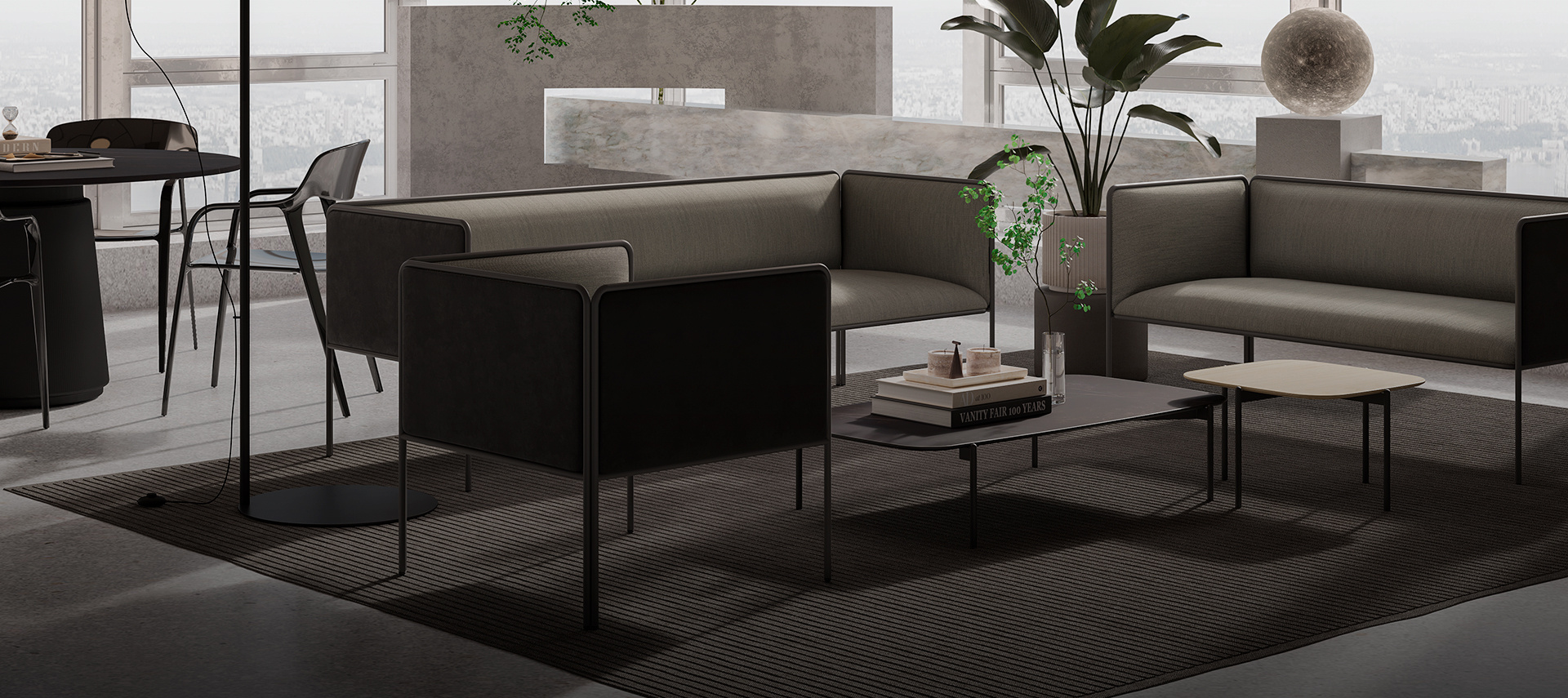 Eidos ist eine elegante und funktionelle Tischreihe, die ein innovatives und hochwertiges Konzept für hybride Räumlichkeiten, Wartebereiche und Lobbys bietet.