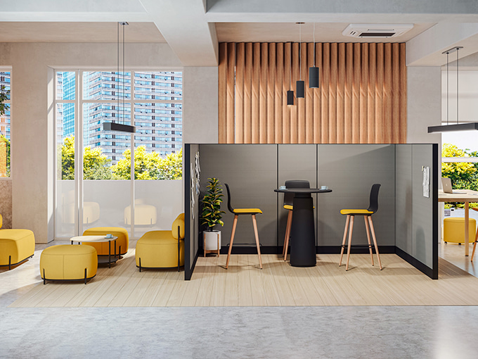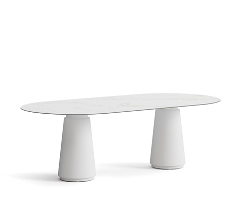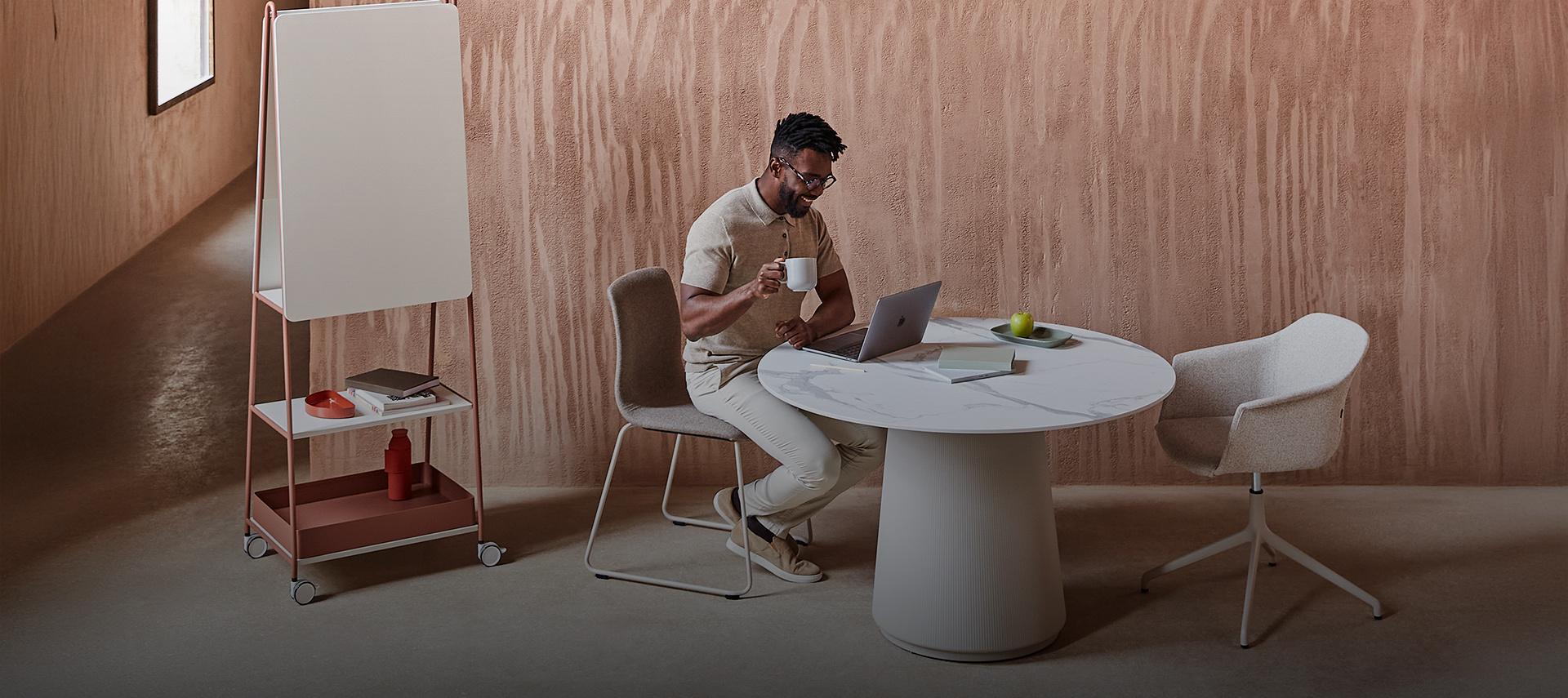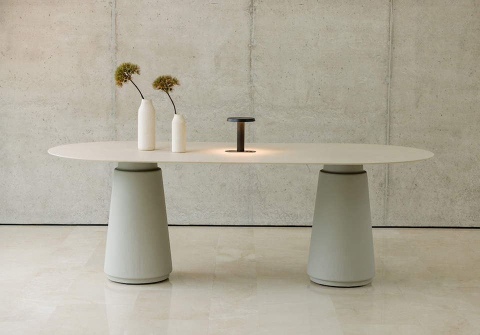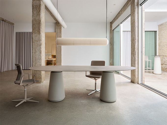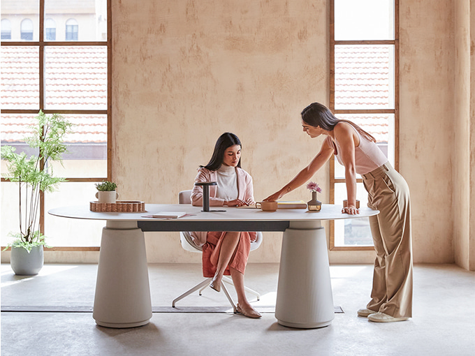 Dorik-Tische können eine oder mehrere Säulen zu größeren Besprechungstischen kombinieren, wobei die strukturelle Steifigkeit und Eleganz erhalten bleibt, oder zu kleineren Tischen für engere Besprechungen oder Einzelarbeitsplätze.