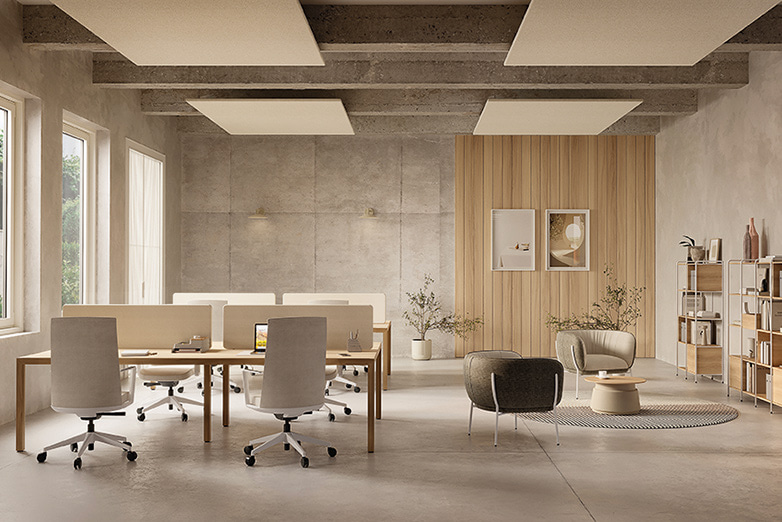 For designers and architects, each material selected not only defines the character of a project, but also reflects a commitment to well-being and sustainability. Aware of this dialogue between space and sensation, Actiu integrates into its design a palette of textures that promotes welcoming and productive working environments.