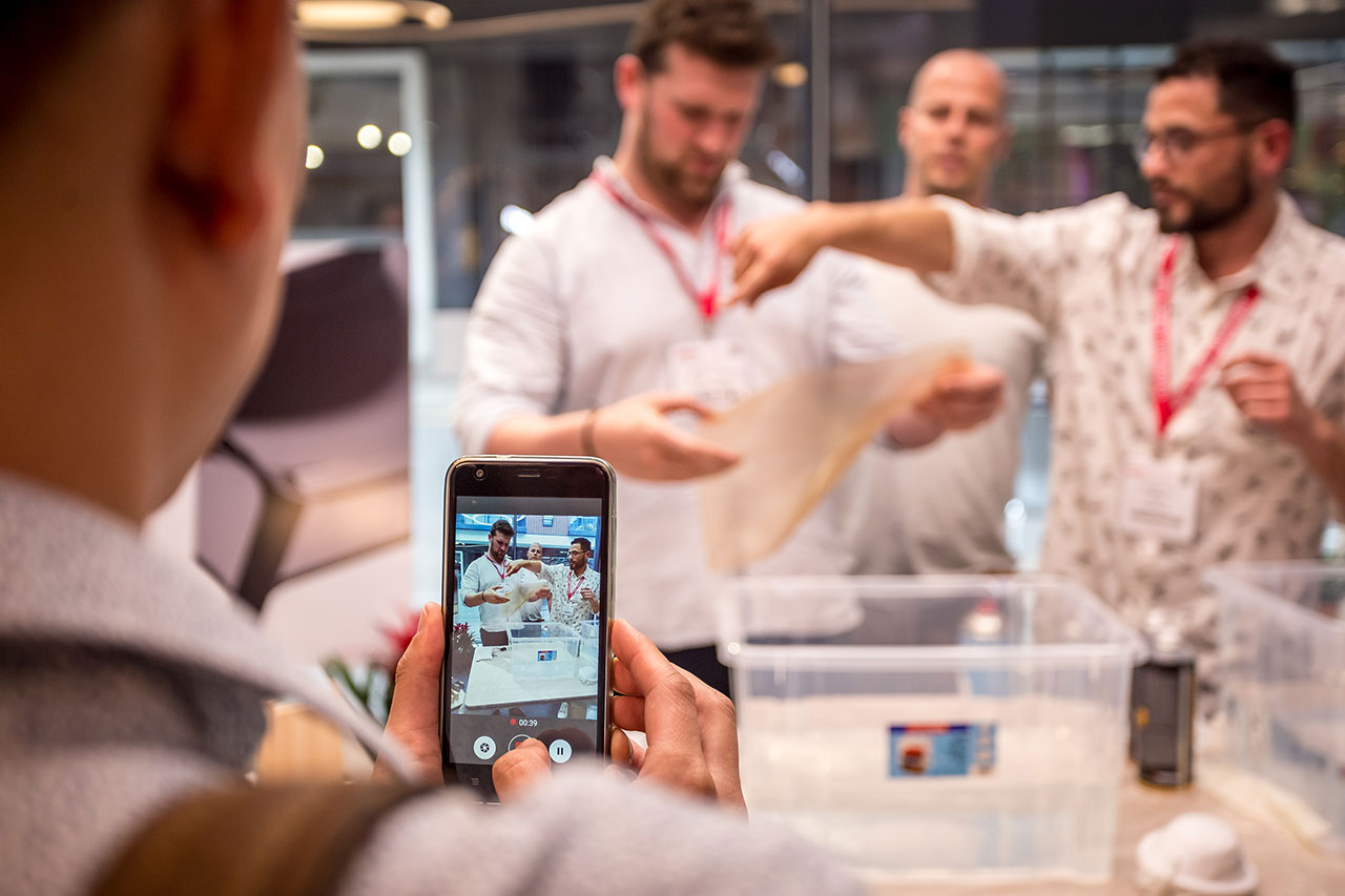 Some of the activities organised during these three intense days included a workshop on water printing, a method that applies printed designs to surfaces in three dimensions, and workshops held in the QB Space, that showed off the advantages of the so-named “pods”, temporary closed glass structures, which are installed in interior open-plan spaces.