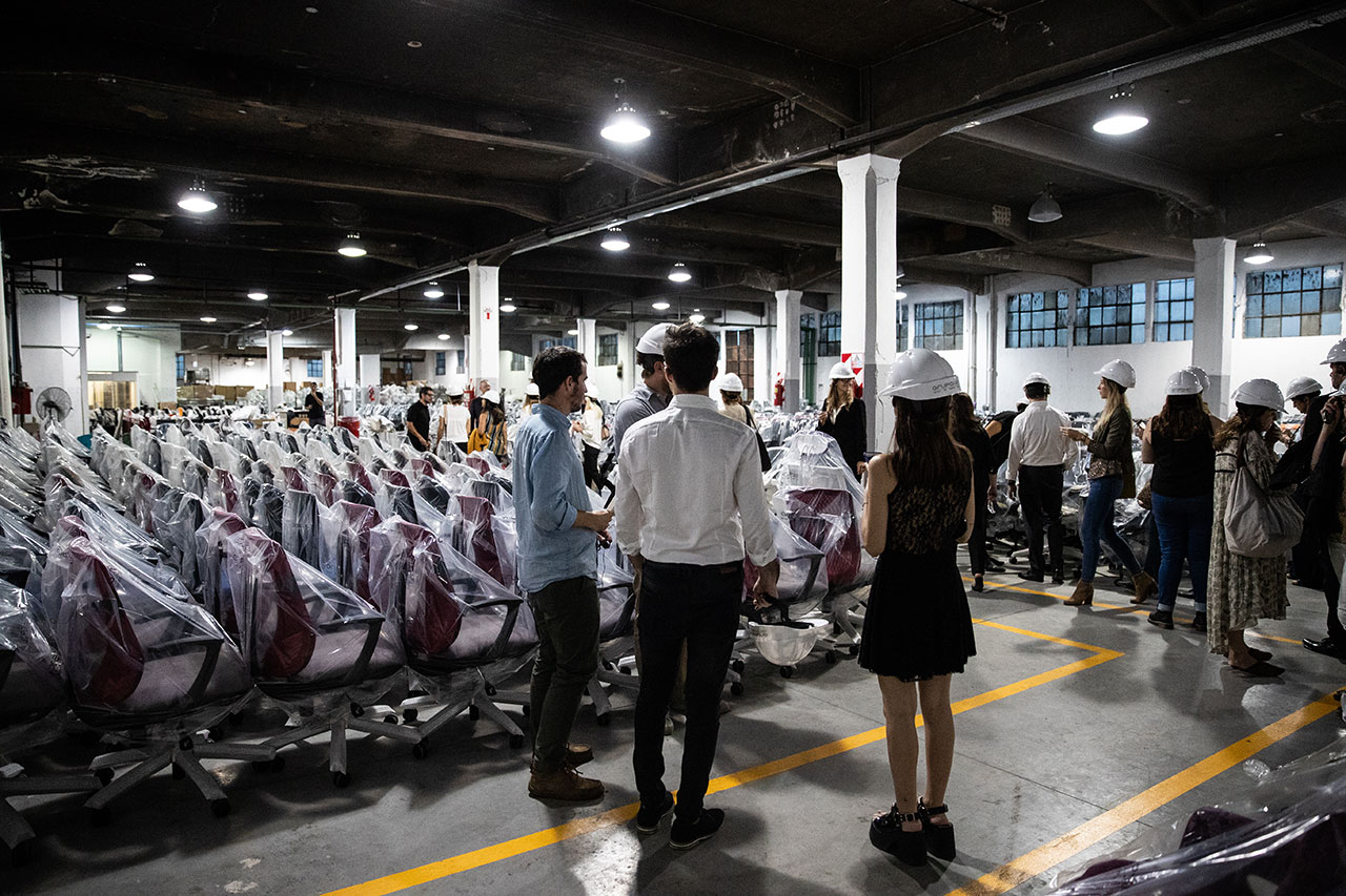 As Director of Grupo(a)² Daniel Cwirenbaum as host and the recently named European Entrepreneur of the Year 2017 Vicente Berbegal as guest of honour, the official arrival of Actiu in Argentina consisted of a guided tour of the showroom which Grupo(a)² has in Buenos Aires to the more than 200 attendees, among them representatives of architecture studios and leading companies. The 30,000m² factory is located in what was an old textile factory with 130 years of history and is currently in the process of being renovated. During the visit, the guests could not only see how the furniture is manufactured in the factory, but they also got to see the only testing laboratory for chairs in Argentina.