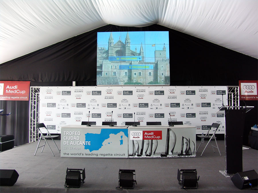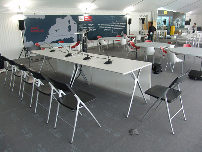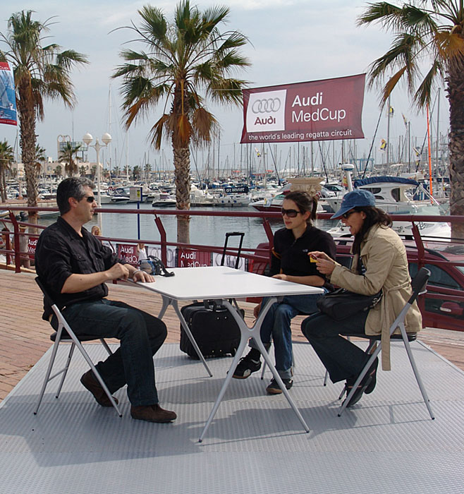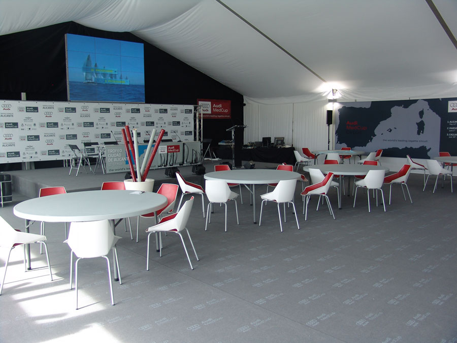 The German automobile company Audi, one of the most important companies in its sector worldwide for its technological innovation, is the principal sponsor of Med Cup. Actiu equipped the official installations of Audi MedCup with an ephemeral architecture project, designed expressly for this sporting event.