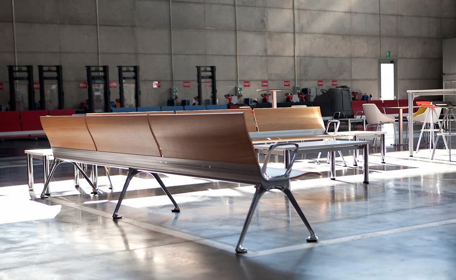 All the cafe space was surrounded with the avant guard bench Transit, presented in two out of the three finishes, wood and polyurethane.