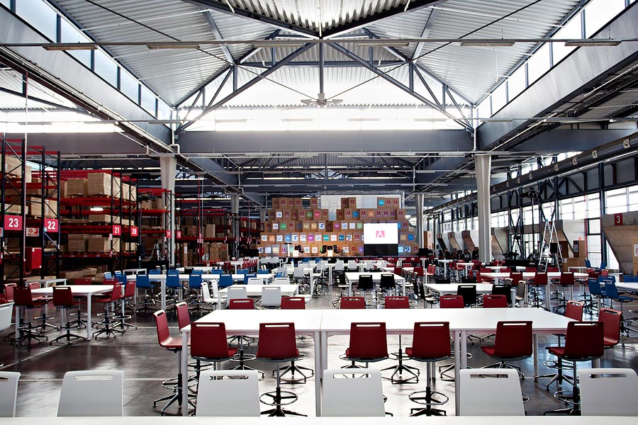On the opposite side of the stage for speakers, a work and networking area was set up. Different compositions from the Cool E100 program of desks covered a wide space, which was turned into meetings for eight, twelve or sixteen participants.