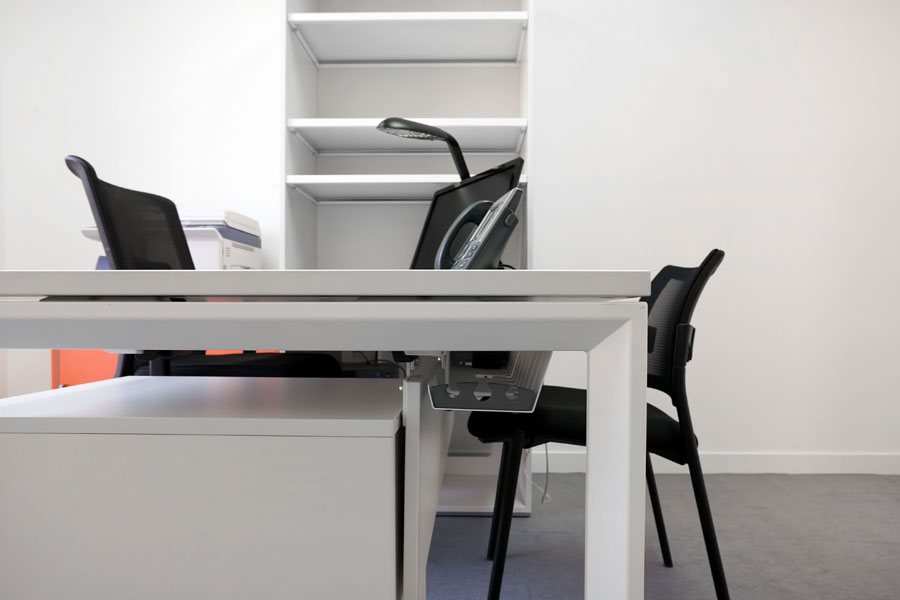 The Cool E100 desks have the capacity to incorporate table top dividers, as well as a hidden wiring channel and easy access which provide maximum optimization of the work surface. Some support have been manufactured from sheet metal specifically for each CPU.