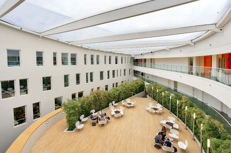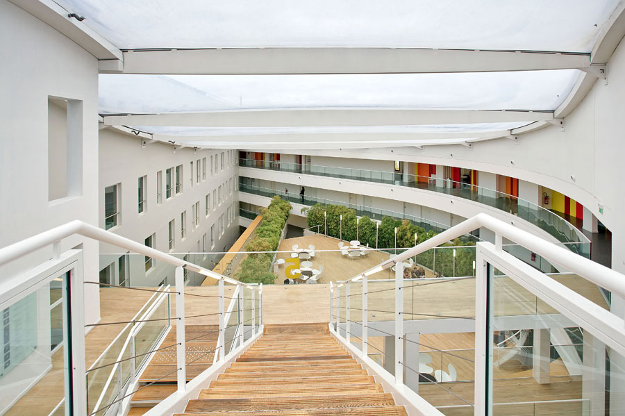 The French AS Architecture-Studio are the authors of the reform and expansion of Novania Business School, carried out under the High Quality Environmental criteria (HQE), in Montparnasse, a district in Paris. The project is home to 1.200 jobs in different areas that make up 18.000 m2 of the school and has classrooms for 1.555 students, three amphitheatres, an auditorium, offices, a sports pavilion, a meeting area and a cafe.