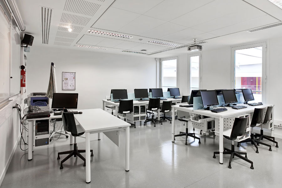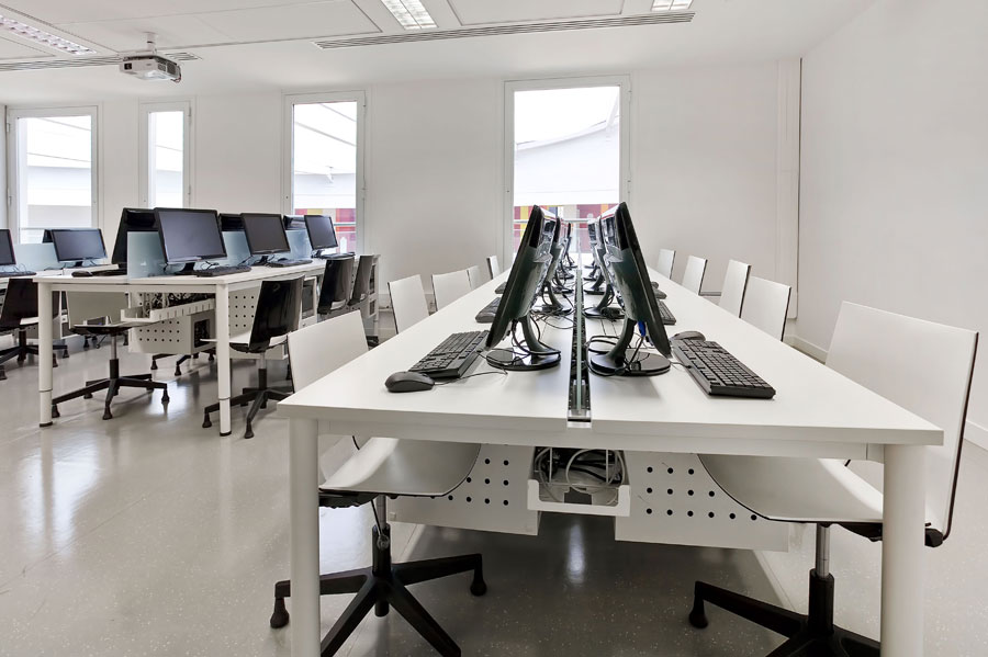 The program Cool E100 desks have been used to equip the computer rooms catering for the needs of the equipment, its wiring and peripherals; thus offering a vision of a room that is ordered and clean.