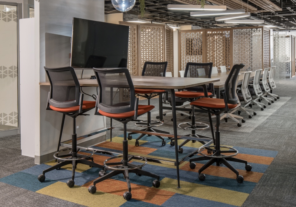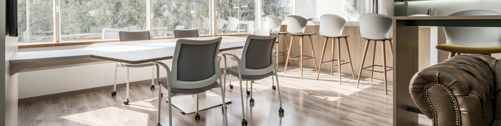 Actiu has participated in the creation of a space that moves away from the serious and rigid character associated with traditional offices, and instead stimulates well-being, creativity and the workers' sense of belonging to the company, with programmes such as the Stay operative chair, chosen for its great versatility and freedom of movement; the Urban chair, stackable and with wheels for greater mobility; the warm and welcoming Noom 30 armchair, which enhances comfort and a sense of belonging; or the Whass stool, with an ergonomic and organic design that adapts to any space.