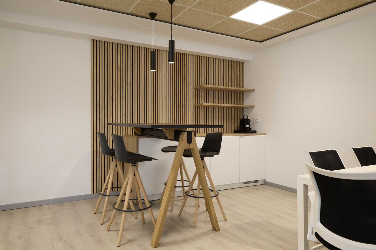 The solution provided by Oficines, which is based on an integral service that covers from the conceptualisation of the project to the final execution, guaranteeing a smooth transition to the new working model. "The most complex part was to carry out the demolition and execution of the work while the company continued with its daily operations," say its managers, who worked in coordination with the specialised company, Kantor (Complet Offices), to achieve this. This alliance made it possible to carry out a comprehensive refurbishment in phases and meet the deadlines, while maintaining high standards of cleanliness and safety.