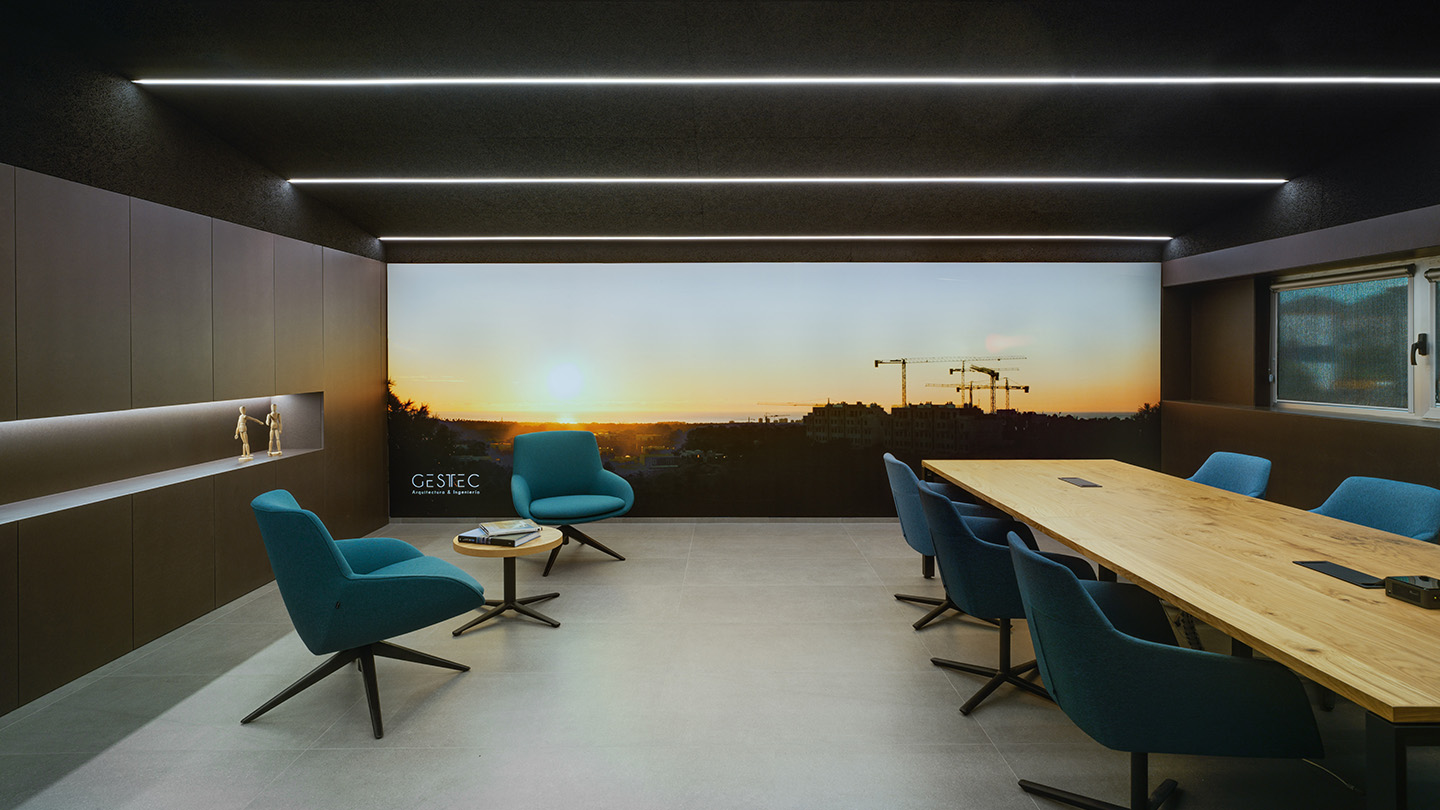 The technical study of works management and architectural projects, Gestec, has commissioned Rocamora Diseño y Arquitectura to design new offices to support its new stage of work growth. A meeting space for clients and a comfortable place for its employees, which is committed to a hybrid model where shared work areas are combined with other intermediate areas to provide different degrees of privacy.