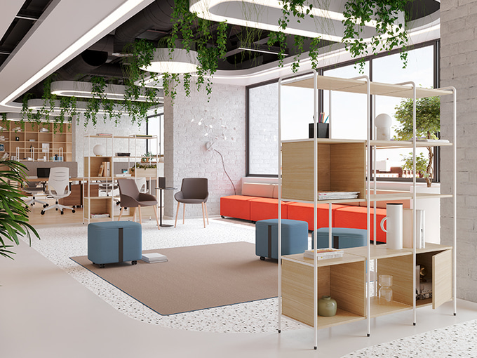The Caddy option of the programme integrates the Tubbe aesthetic into workspaces that require greater flexibility or even Agile methodologies.