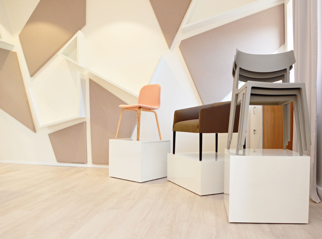 Se trata de un entorno multifuncional donde el producto está expuesto, no únicamente para ser observado, sino para ser vivido. De este modo, el showroom de Praga organiza sesiones de yoga y masajes para sus trabajadores y ofrece las instalaciones para realizar presentaciones o conferencias a otras empresas.
