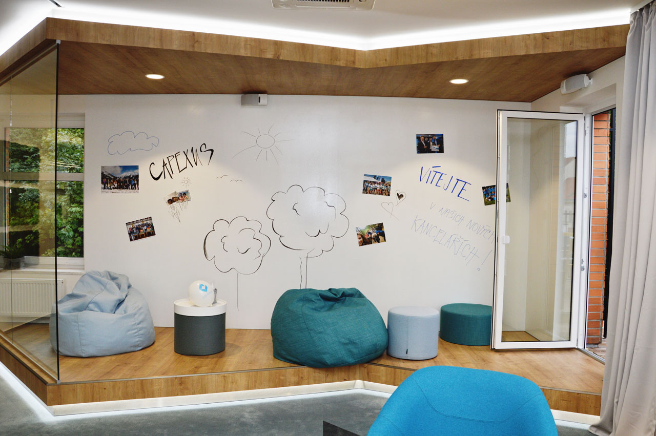 Cool Working forma parte de la filosofía que CAPEXUS transmite en todos los proyectos que realiza para sus clientes, como en sus propias instalaciones, recién inauguradas en un edificio de tres plantas, en la capital checa. El rápido crecimiento de la firma ha favorecido el traslado a este nuevo showroom, distribuido según los conceptos del Cool Working en Zona de Colaboración, Zona de Aprendizaje, Zona de Concentración y Zona de Socialización y diseñado según las enseñanzas del feng shui para distribuir la energía de forma positiva en el espacio.