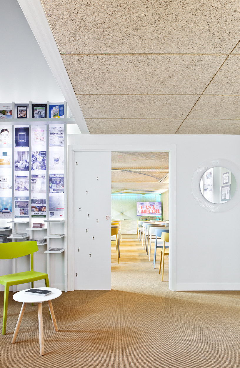En el diseño del coworking, realizado en colaboración con el Colegio Oficial de Decoradores y Diseñadores de Interior de Madrid, se han instalado también dos de los programas de mobiliario más atrevidos de la firma Actiu: el sofá Bádminton y Longo, un sistema modular de micro-arquitecturas que permite crear puestos de trabajo diferentes, donde se conjugan las mesas, los sofás, las soluciones de almacenamiento e incluso las plantas. El resultado es una oficina pequeña pero acogedora que bien podríamos encontrar en cualquier vivienda moderna.
