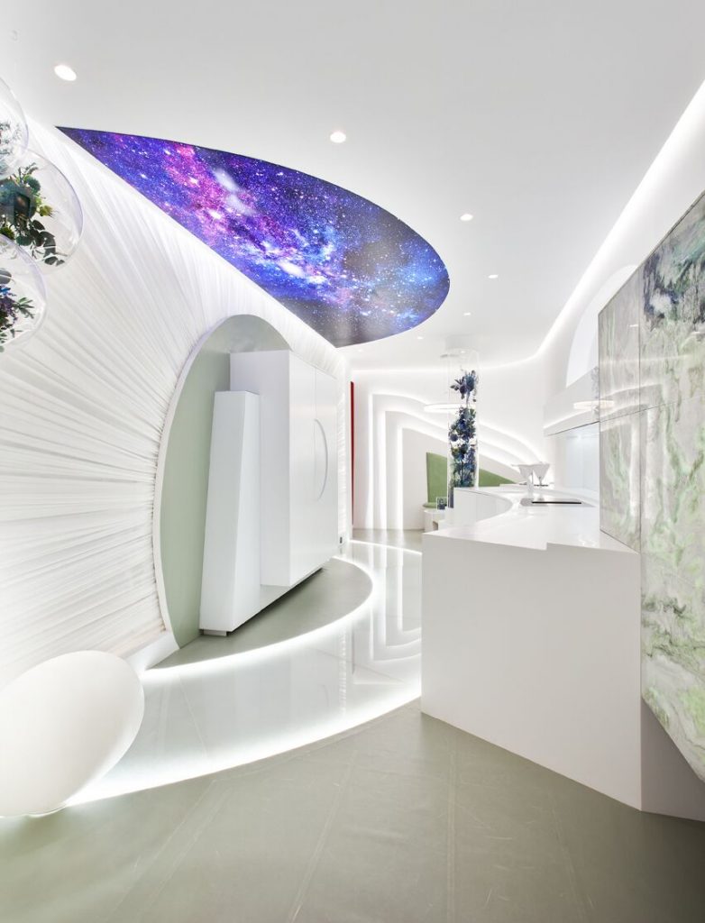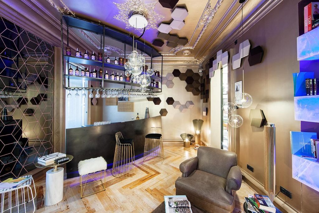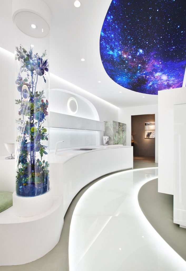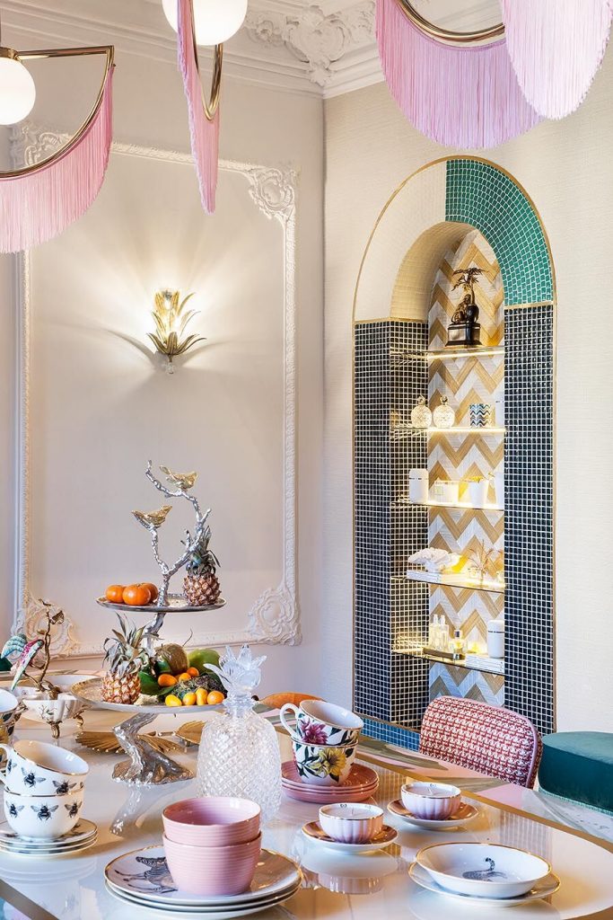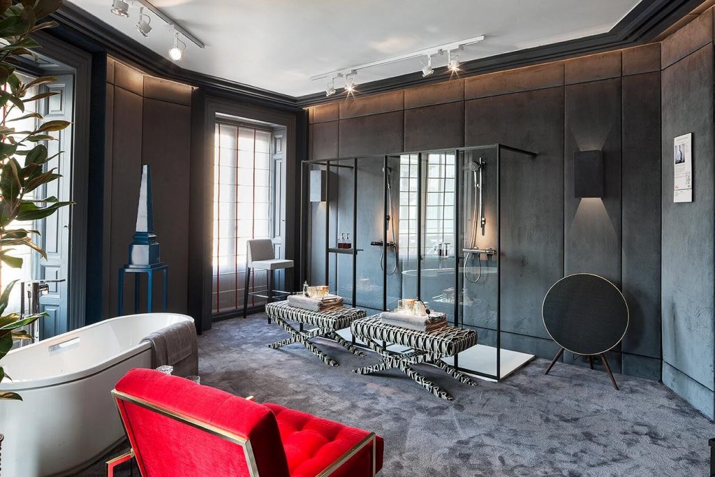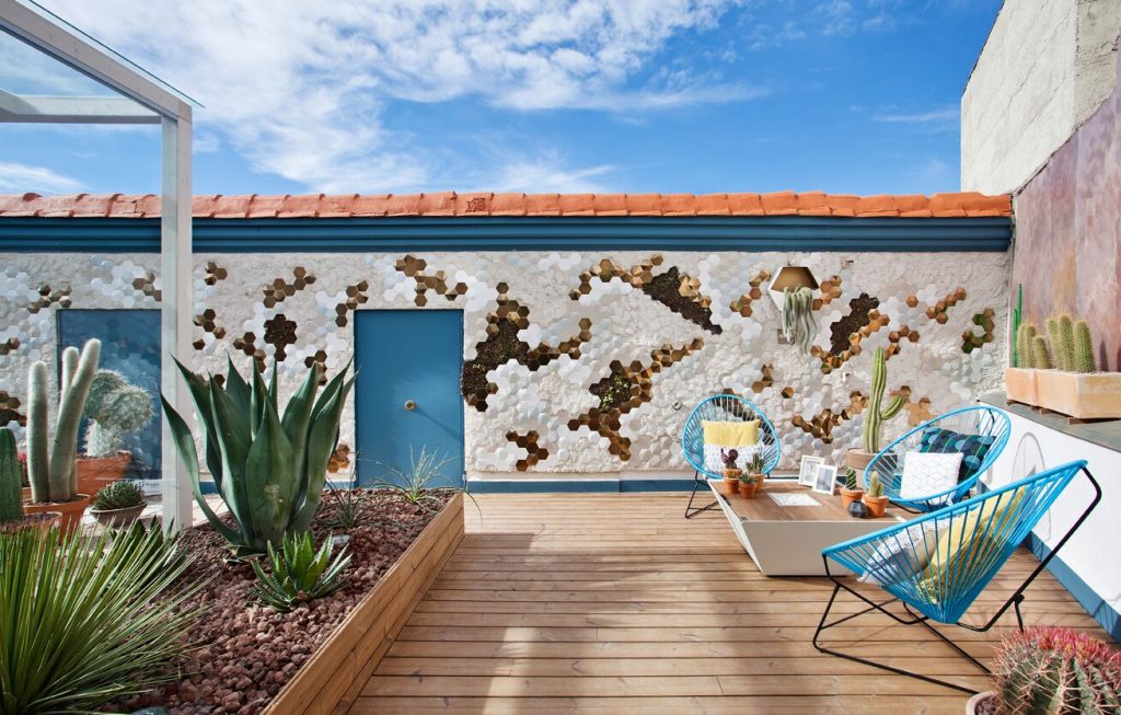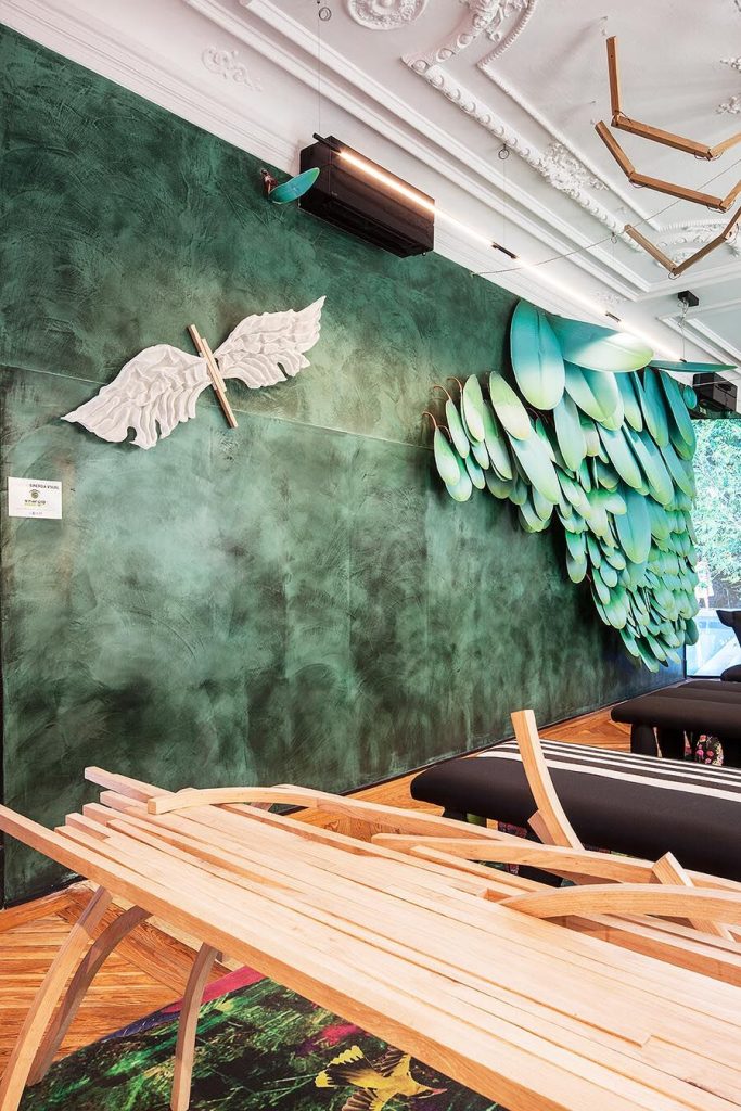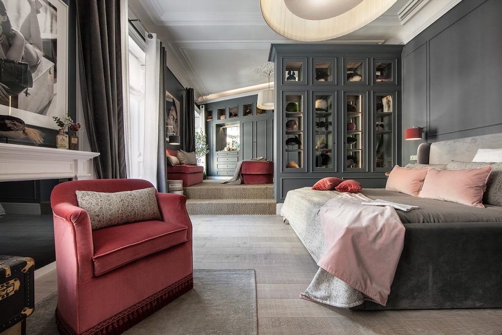 “Frente a concepciones culturales pasadas, en las que el rosa se veía como un color femenino, el rosa elegido para el lounge principal de Casa Decor se lee como un color sin género, o enfocado a un género más fluido” apunta María Antón-Barco, que destaca cómo este color es frecuentemente usado en el diseño de interiores para aportar confort y calidez. Un envoltorio neutro que combina a la perfección con el resto de colores empleados: el azul del soft seating Bend de Actiu, para tranquilizar y disminuir tensiones; y el verde de las plantas, que introduce la naturaleza en el interior.