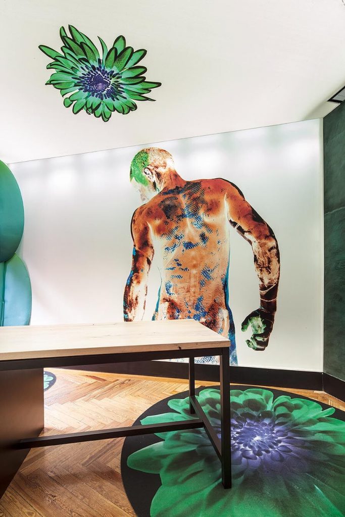 “No somos conscientes del poder de la pintura para transformar los espacios en los que vivimos y trabajamos”, señalan los autores del proyecto, motivados por la inquietud de transmitir la capacidad cambiante de la luz y el color en los espacios de vida y trabajo, y su poder terapéutico. De la mano de Fluvia –responsable de las luminarias– y Simon –encargada de los mecanismos de iluminación–, la instalación ha demostrado cómo los sistemas de regulación de la iluminación modifican y condicionan la percepción del color y, por ende, del espacio