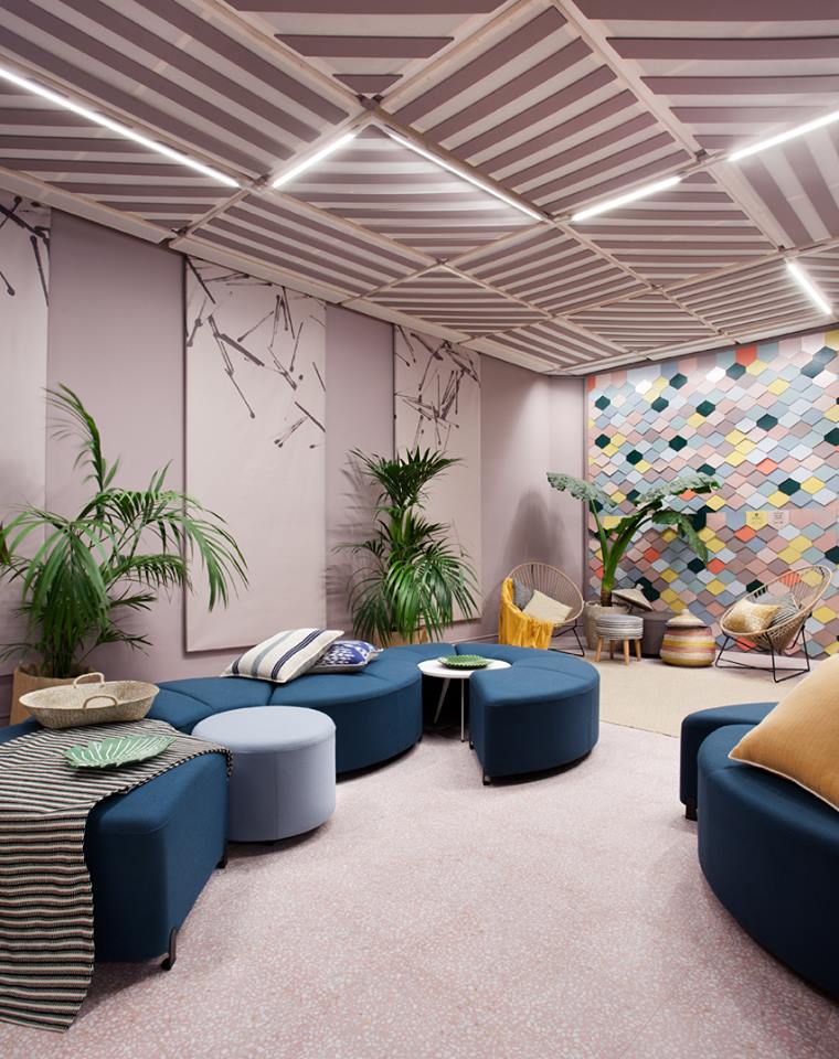 Con el mural de ESNE como telón de fondo, y rodeado por muy distintas texturas, colores y formas, Bend ha presidido el Espacio Procolor. Un diseño modular e informal, que aunque pensado originalmente para áreas de encuentro y socialización en los espacios de trabajo, ha demostrado su gran versatilidad, al permitir ser utilizado indistintamente en espacios públicos, de espera u ocio. Diseñado por Stone Designs, Bend surge con la idea de aportar movimiento y vida. “Es una colección que camina por los espacios, generando diferentes zonas de descanso adaptadas a todos los usuarios” explican sus creadores.