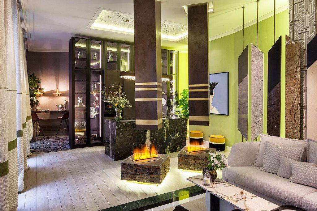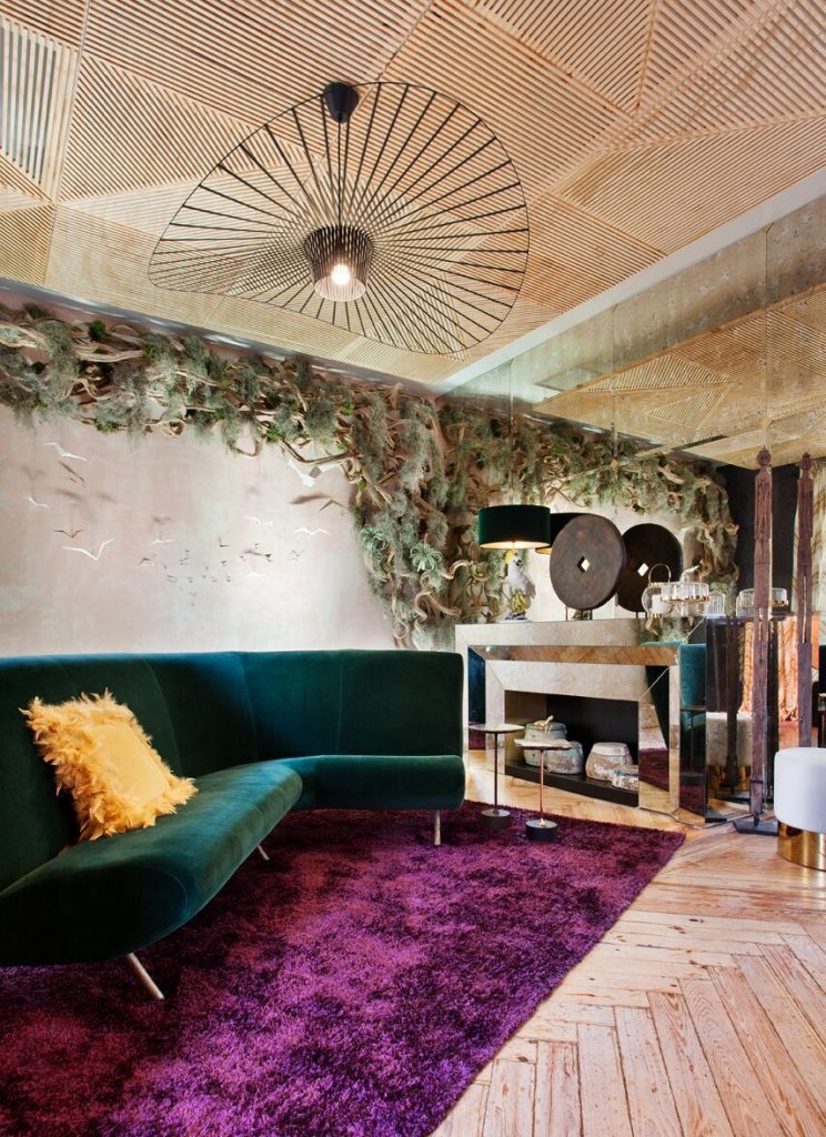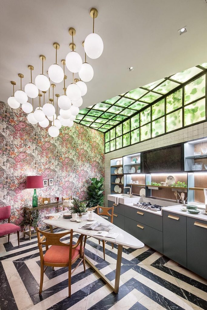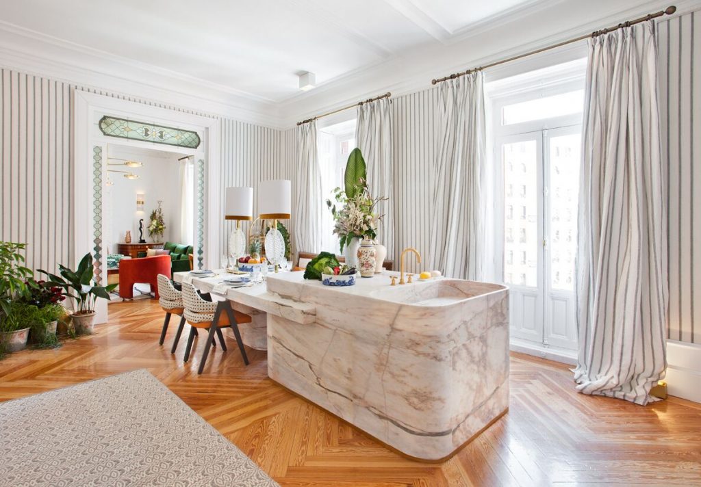Más allá de usos y distribuciones, la transversalidad está presente también en formas y materiales, que han dejado de asociarse ya a un determinado espacio o función. Tejidos aterciopelados que van más allá de las tapicerías y revisten paramentos verticales, flecos dando forma a muebles y complementos, o piedras tradicionalmente utilizadas en suelos, aplicadas ahora sobre mesas, islas de cocina o cabeceros. Una disolución de límites que, en línea con la cada vez más difusa barrera entre la vida familiar, laboral y de ocio, apuesta por un diseño abierto y flexible, donde conviven interior y exterior. Una tendencia de la que son en parte responsables las plantas que, protagonistas de muchos de estos espacios, sirven para mucho más que decorar: humanizan, iluminan, alegran, oxigenan, distribuyen y ordenan.