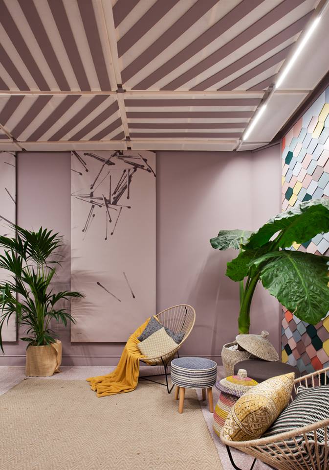 Los alumnos de los cuatro cursos del Grado en Diseño de ESNE han diseñado y construido, a partir de la pintura, este espacio de relax donde los visitantes han podido pararse a descansar y recargar energía. Un entorno, como señala la coordinadora del proyecto y directora del Grado en Diseño de Interiores de ESNE, María Antón-Barco, “para ser usado y no sólo contemplado, convertido en lugar de encuentro al comenzar la visita y de descanso al finalizarla”. Con una original pared fabricada por muestras de distintos materiales de Finsa, mecanizadas en el laboratorio de fabricación digital de la escuela, el Espacio Procolor ha hecho del palo de rosa el color dominante de la intervención. Un tono sutil y cálido, que inspirado en las cualidades táctiles de la madera tradicional alberga un universo sereno y relajado, completamente opuesto al mundo 'real', cada vez más rápido y fugaz.