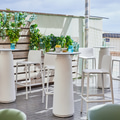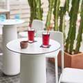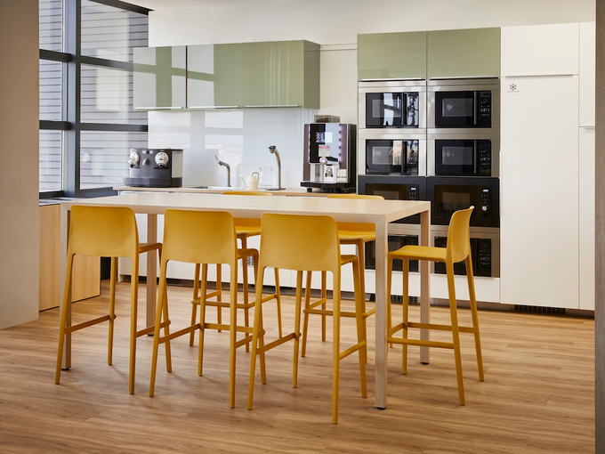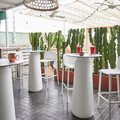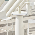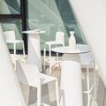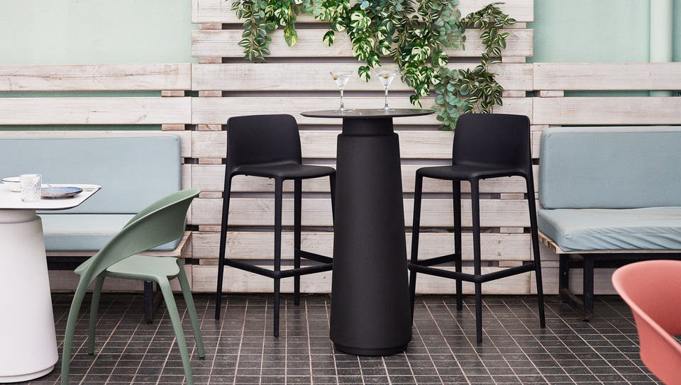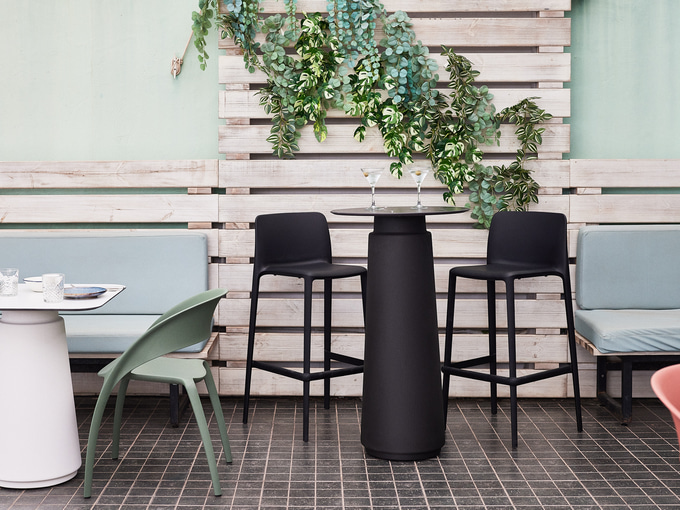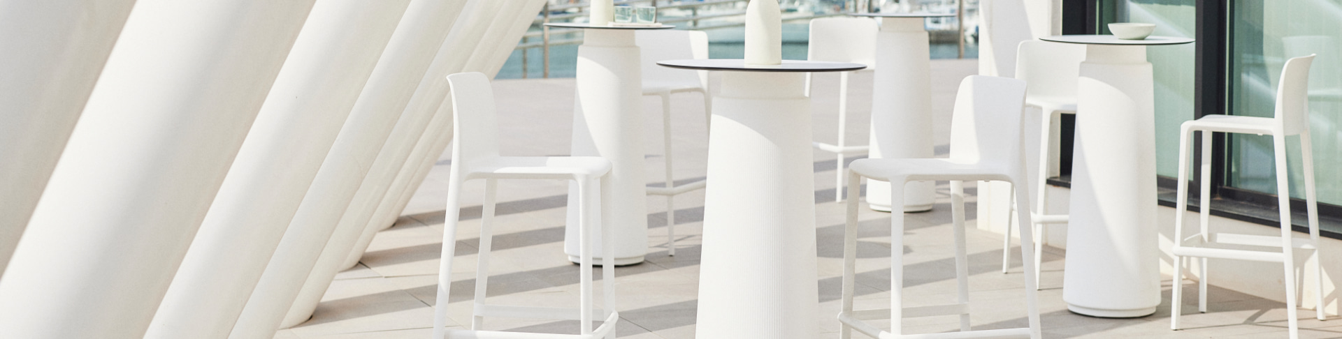 Gracias a su formulación con fibra de vidrio y su tratamiento anti-UV, Fluit no solo soporta el uso intensivo en interiores; aguanta la humedad y la radiación solar sin degradarse. Es una pieza todoterreno que funciona igual de bien en un entorno hospitality que en zonas de colaboración corporativa.