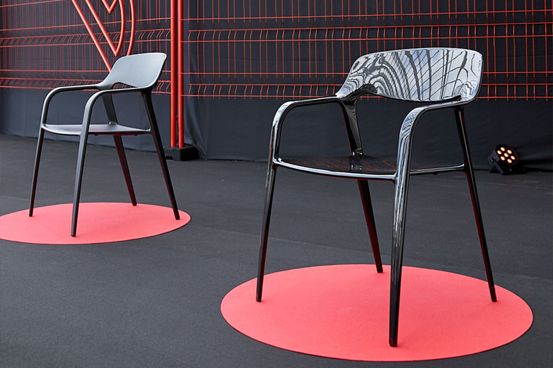 Sobre el escenario, ocho sillas Karbon, piezas icónicas fabricadas en fibra de carbono que cuentan con un Red Dot Product Design Award 2019, han acogido a los premiados mientras que las autoridades han ocupado filas del modelo Noom 50 en diferentes tonos y el resto del patio de butacas se ha equipado con más de 200 sillas de la colección Wing.