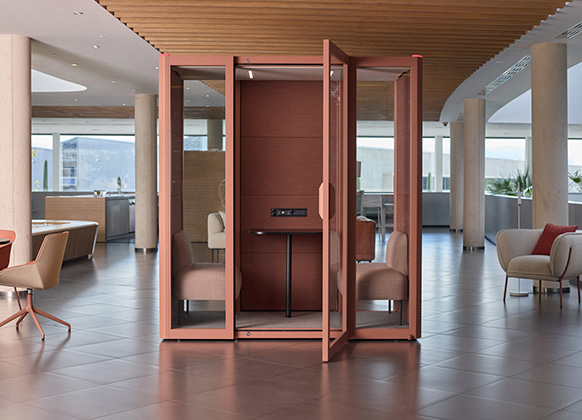 Las cabinas pueden colocarse en cualquier lugar de la oficina y utilizarse como un elemento de diseño. Cuanto más cerca están de las personas, mayor es su uso.