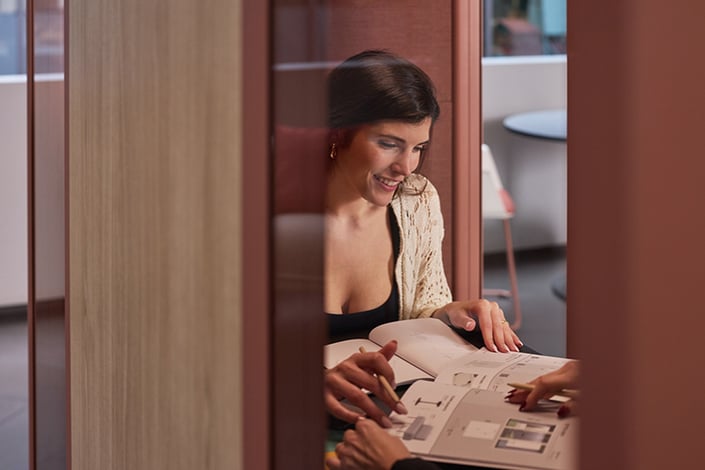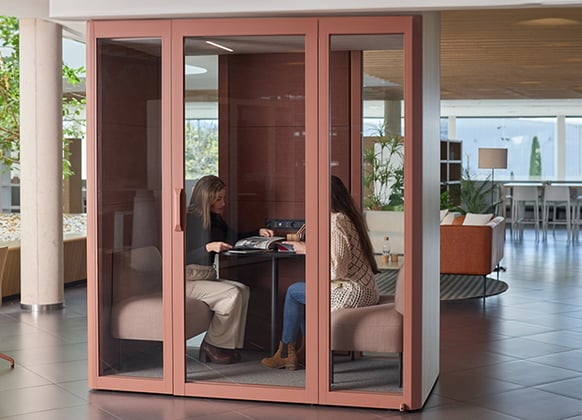 El sonido es uno de los factores que más condiciona el bienestar en la oficina, aunque a menudo pase desapercibido. El exceso de ruido interrumpe la concentración y aumenta los niveles de estrés, lo que repercute directamente en la productividad. Para evitarlo, es recomendable diseñar espacios que integren soluciones acústicas, como paneles absorbentes o cabinas acústicas para llamadas, videoconferencias y mayor privacidad. Estas medidas permiten crear ambientes tranquilos en áreas de foco, sin renunciar a zonas más abiertas y dinámicas pensadas para la colaboración.