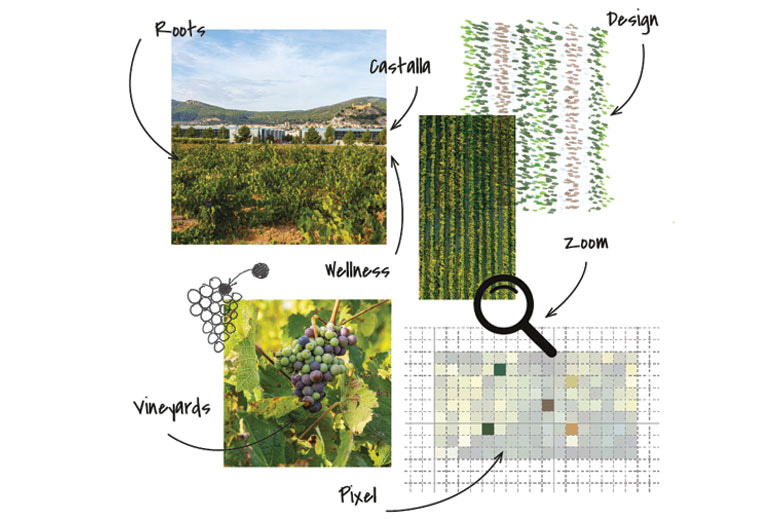 El píxel, una minúscula unidad de información visual, aparentemente insignificante por sí sola, se transforma cuando se une, formando imágenes asombrosas y significativas. De manera similar, en los viñedos, las uvas individuales pueden parecer simples, pero cuando se combinan, crean vinos exquisitos. La importancia de cada detalle, ya sea un píxel en un diseño o una uva en un viñedo, y cómo, cuando se unen, crean algo hermoso y completo.