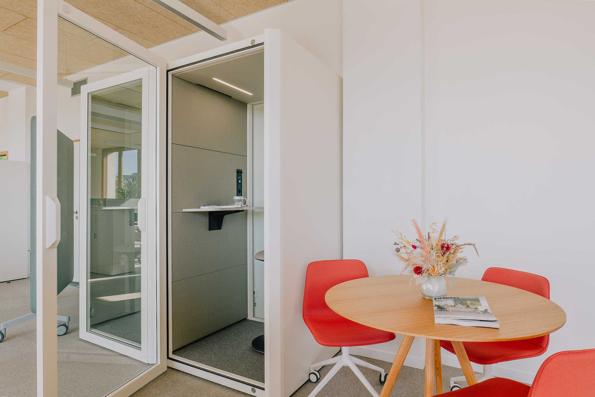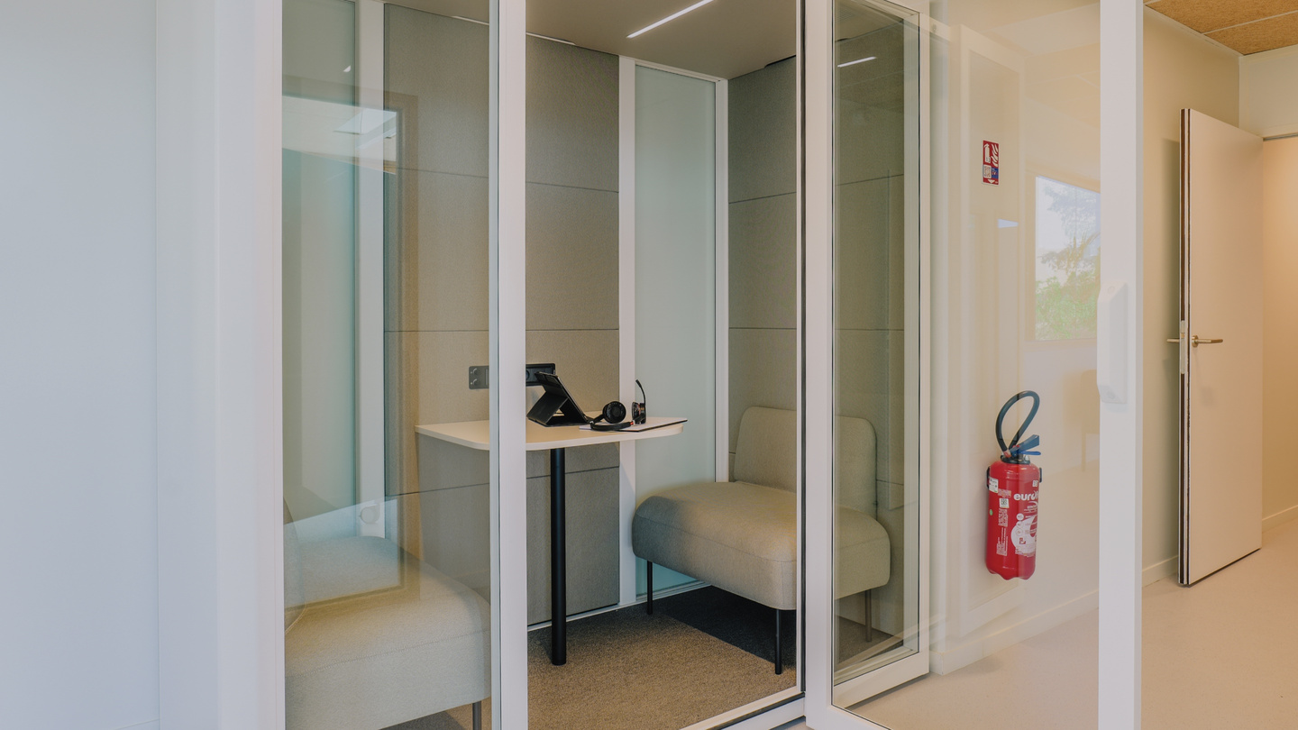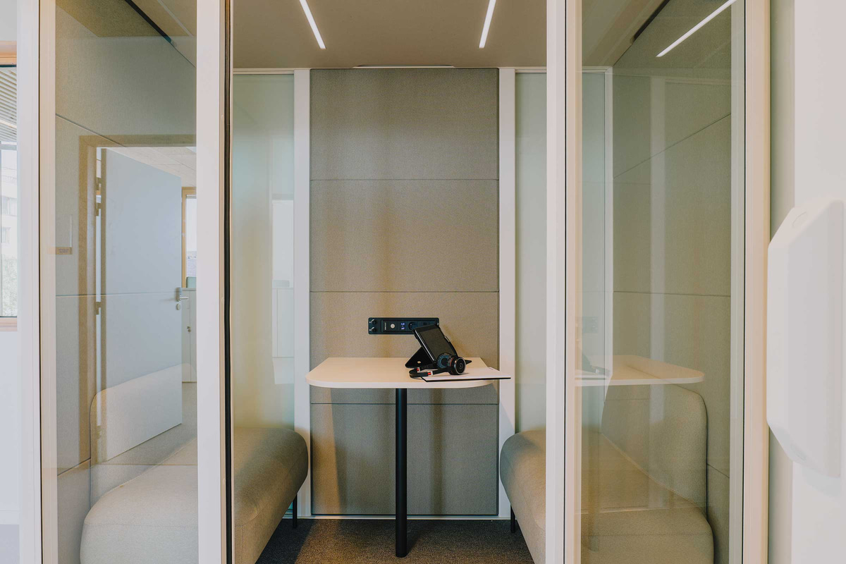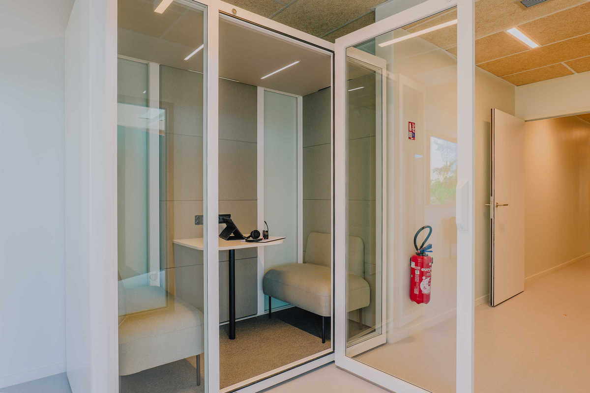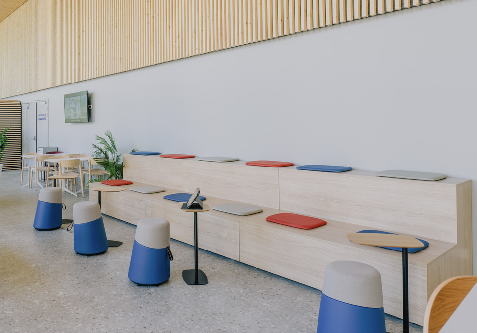 Entre las firmas seleccionadas, Actiu ha participado, junto a su partner Marcireau, con las gradas y pufs de la Colección Agile, que potencian la creatividad y facilitan la reorganización del espacio según la actividad. También se han utilizado mesas Tabula y Armarios modulares, pero las verdaderas protagonistas son las cabinas acústicas Qyos, donde los estudiantes y docentes pueden concentrarse, realizar llamadas sin ser molestados o reunirse para trabajar en pequeños grupos.