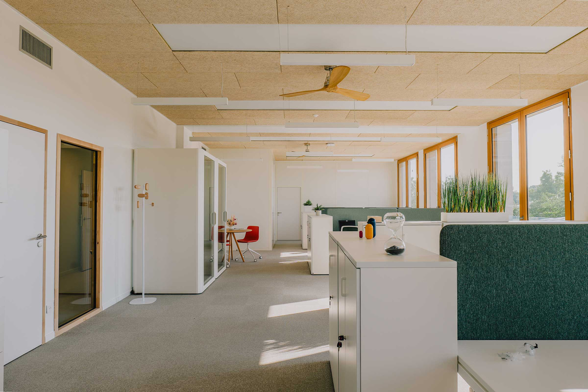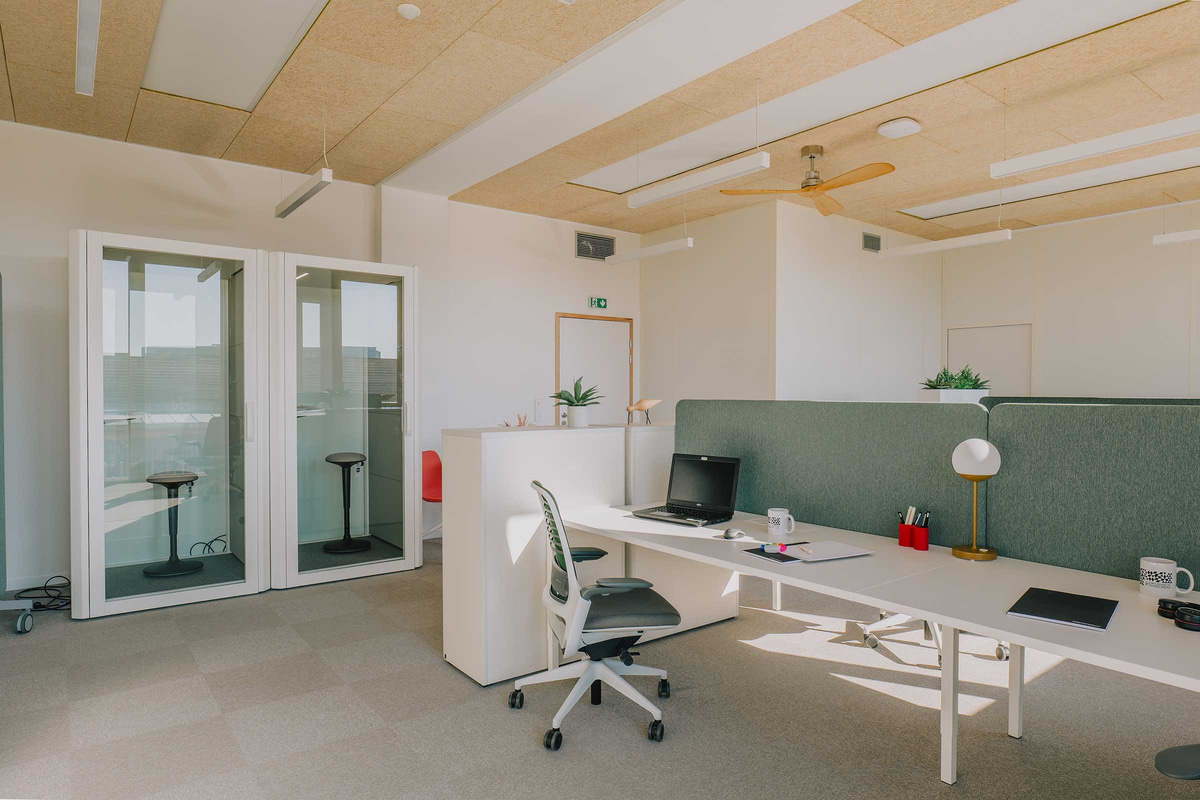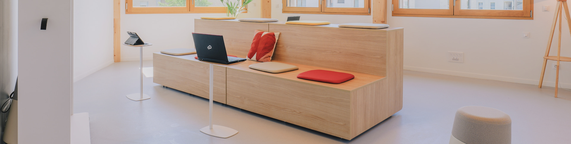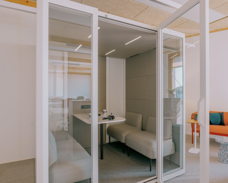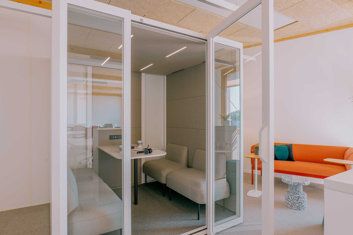 Entre las firmas seleccionadas, Actiu ha participado, junto a su partner Marcireau, con las gradas y pufs de la Colección Agile, que potencian la creatividad y facilitan la reorganización del espacio según la actividad. También se han utilizado mesas Tabula y Armarios modulares, pero las verdaderas protagonistas son las cabinas acústicas Qyos, donde los estudiantes y docentes pueden concentrarse, realizar llamadas sin ser molestados o reunirse para trabajar en pequeños grupos.