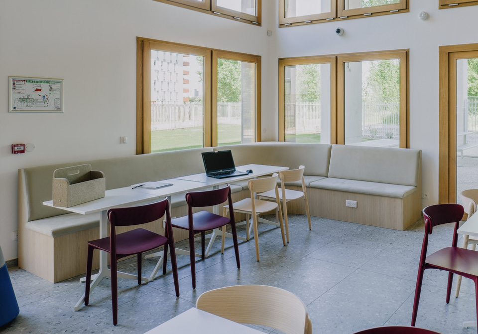 Junto a los arquitectos ha trabajado el Grupo Kardham, presente en todas las fases del proyecto a través de acciones de gestión del cambio que han ayudado a los usuarios a adaptarse a su nuevo entorno de trabajo y aprendizaje; así como en el diseño de la distribución interior y selección del mobiliario más adecuado para los espacios educativos, colaborativos y sociales.