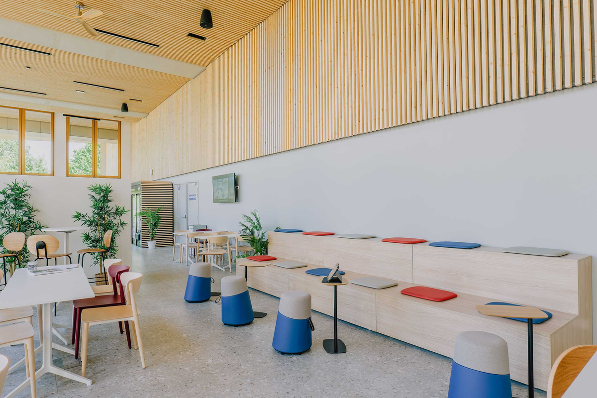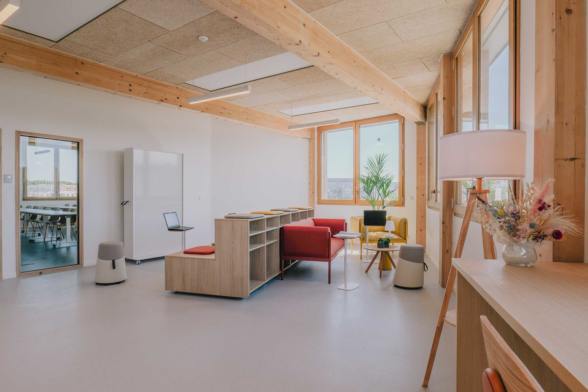 Proyectado por MU Architecture, el nuevo centro de Excelia en Tours integra la vida estudiantil con la del barrio, a través de amplias fachadas acristaladas que abren las zonas comunes de la planta baja al entorno y vinculan educación y ciudad. Con aulas, una mediateca, oficinas y espacios sociales y de trabajo en las plantas superiores, y una azotea ajardinada en cubierta, el edificio se concibe y diseña para una máxima adaptabilidad, con la circulación y los servicios en un núcleo central de hormigón que permite una total libertad para reimaginar una nueva distribución. Materiales sostenibles y locales, como la madera de Chinon de la estructura y la paja de Anjou de la fachada, refuerzan la apuesta del grupo por un enfoque bioclimático y sostenible.