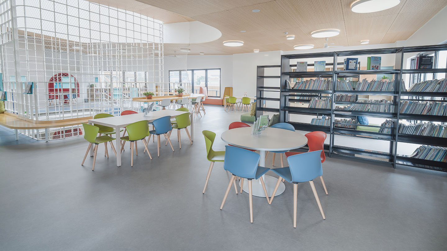 Distribuciones flexibles, elementos móviles y plegables, patios y espacios exteriores conectan el aprendizaje con la naturaleza y el pensamiento sostenible.