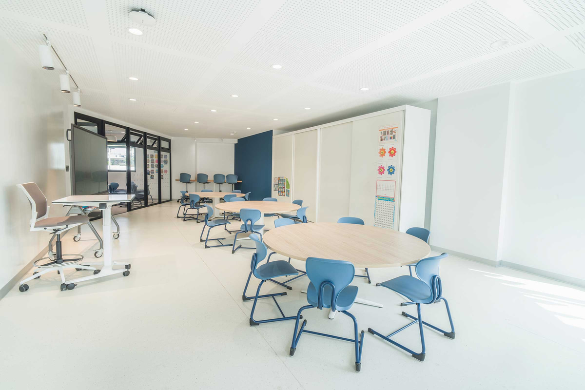 Diseñado por Rosan Bosch Studio, que desde Copenhague desarrolla proyectos para el cambio y los nuevos modelos de vida y trabajo, la nueva escuela de primaria se concibe como un “paisaje de aprendizaje”, preparado para cualquier posible imprevisto y que minimiza los riesgos para la salud. Un entorno polivalente y conectado, que para potenciar el cambio y el movimiento de los alumnos por las distintas áreas, se distribuye a lo largo de un edificio de tres plantas distribuido en torno a un gran espacio verde. Balcones, jardines verticales, un puente de aprendizaje y varios patios diluyen límites con el entorno y permiten la educación al aire libre.