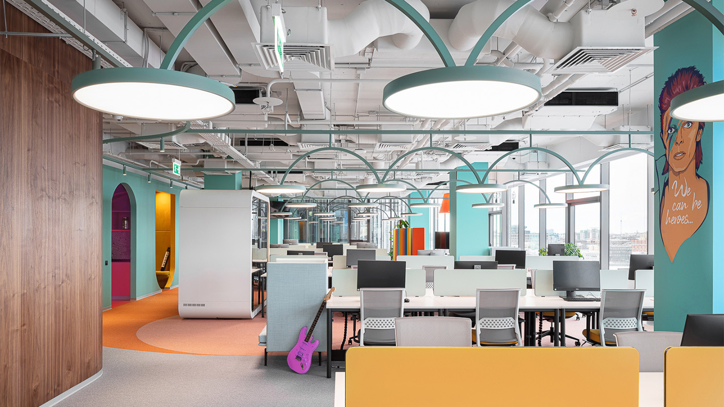 La historia, cultura y atmósfera de los años 60 y 70, con sus grandes descubrimientos, avances científicos y nacimiento de las primeras startups, y la filosofía de Avito, 'Trabaja duro – juega duro', impregna una sede que invita a la actividad física y potencia el desarrollo de emociones positivas.