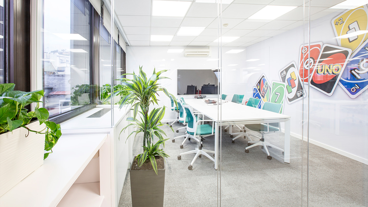 Con diferentes “phonebooths” que incorporan un guiño a cada una de las marcas de Mattel, los espacios dedicados a las reuniones menos formales son una de las señas de identidad de las nuevas oficinas. Desde cubículos cilíndricos y juegos de gradas que recuerdan a parques infantiles, a una zona de exposición de materiales que Actiu ha vestido con sillas y taburetes Whass y una mesa alta Tabula, todos permiten mantener encuentros de trabajo más dinámicos, e incluso de pie, favoreciendo el movimiento físico del equipo durante la jornada laboral.
